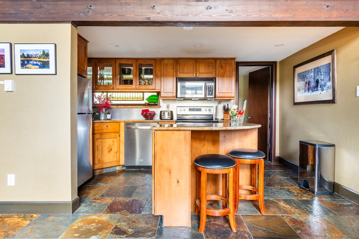 Απολαύστε το Breckenridge χωρίς κόπο με αυτό το πραγματικό διαμέρισμα στο Peak 9 με άμεση πρόσβαση στις πίστες του σκι, σε μικρή απόσταση με τα πόδια από τον αναβατήρα Quicksilver και τη σχολή σκι – ιδανικό για οικογένειες και αρχάριους σκιέρ. Θα έχετε μια πλήρως εξοπλισμένη κουζίνα για εύκολα γεύματα, έναν άνετο χώρο διαβίωσης για χαλάρωση και ένα ιδιωτικό μπαλκόνι με θέα στο βουνό. Ολοκληρώστε την ημέρα σας στην πισίνα και τα τζακούζι του ξενοδοχείου και, στη συνέχεια, επισκεφτείτε την πόλη για να απολαύσετε τα αγαπημένα σας μέρη στην Main Street. Η ιδανική βάση για την απόδρασή σας στο βουνό. Κάντε κλικ στο "Διαβάστε περισσότερα" για να δείτε το Συμφωνητικό ενοικίασης.