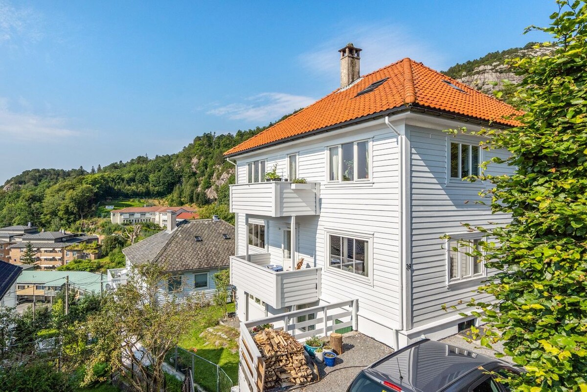 Old Bergenhouse from 1881, 15min walking to the harbour and Bryggen and the town. Το κύριο διαμέρισμά μας είναι 63 τ.μ. Έχει ένα υπνοδωμάτιο, με ένα διπλό κρεβάτι.(160 εκ.) Υπάρχει ένας καναπές-κρεβάτι στο σαλόνι (80/160 εκ.). Κατάλληλο για ζευγάρια, 1-2 άτομα μπορούν να κοιμηθούν στον καναπέ-κρεβάτι στο σαλόνι. Εάν είναι οικογένεια, είναι δυνατή η τοποθέτηση κρεβατιού IKEA, που συνιστάται για παιδιά. Νικητής του "Πιστοποιητικού αριστείας" από το Tripadvisor 2014-17 και το "Travellers choice 2017 and 2018"