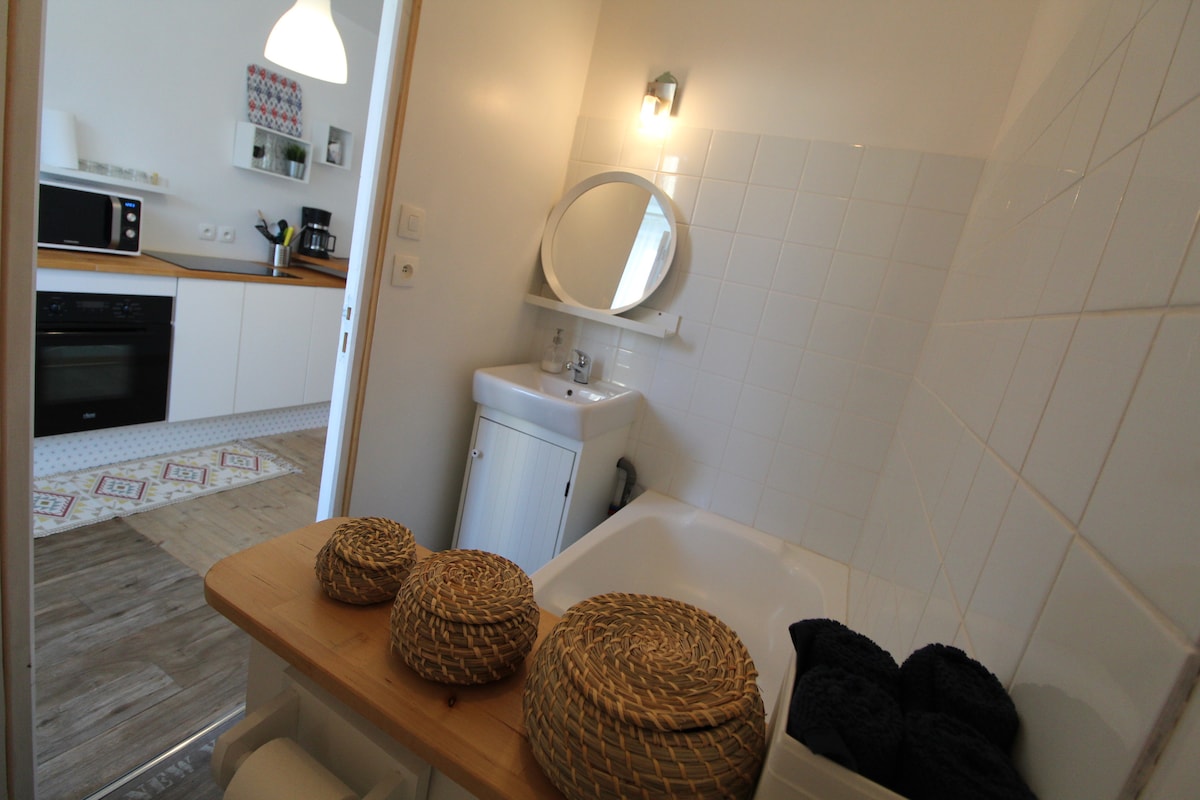 Διαμέρισμα 48τ.μ. στο ισόγειο ενός πολύ ήσυχου σπιτιού με κήπο, βεράντα με θέα στη θάλασσα, που βρίσκεται 2 βήματα από την αποβάθρα, τα καταστήματα, τα μπαρ και τα εστιατόρια. Σε κοντινή απόσταση από την παραλία. Ένα παλιό γκαράζ είναι διαθέσιμο για ποδήλατα, σέρφινγκ και ιστιοσανίδα. Υπάρχει επίσης πλυντήριο ρούχων και καταψύκτης. Ιδιωτικός χώρος στάθμευσης. Ξεχωριστή πρόσβαση. WiFi. GR 34 και θαλάσσιες συνδέσεις με τα νησιά Ponant (το καλοκαίρι) σε κοντινή απόσταση.