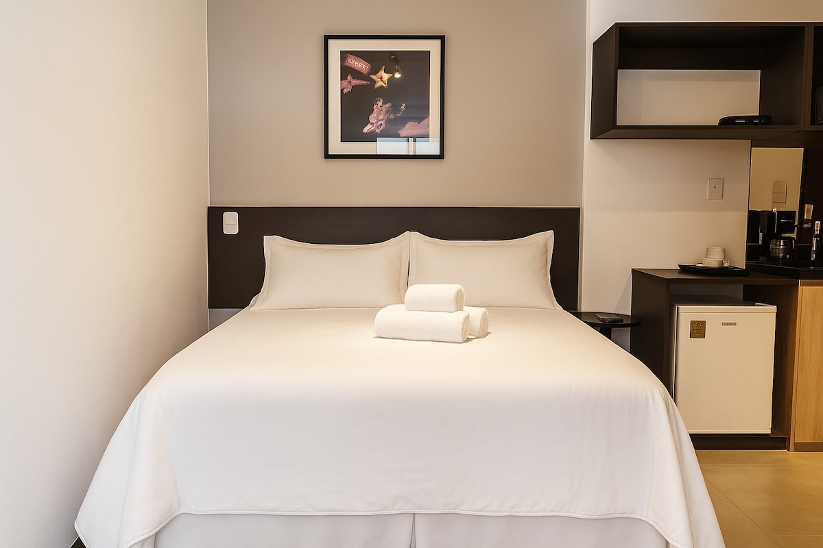 Καλώς ήρθατε στο καταφύγιό σας στην καρδιά του Παραδείσου. Αυτό το στούντιο έχει σχεδιαστεί προσεκτικά για να παρέχει μια άνετη, λειτουργική και αξέχαστη διαμονή. Κάθε λεπτομέρεια της διακόσμησης, από τα λευκά είδη μέχρι τον φωτισμό, επιλέχθηκε για να δημιουργήσει μια φιλόξενη εμπειρία, με την αίσθηση ότι βρίσκεστε στο σπίτι σας, αλλά με μια προνομιακή θέα στο Σάο Πάολο.