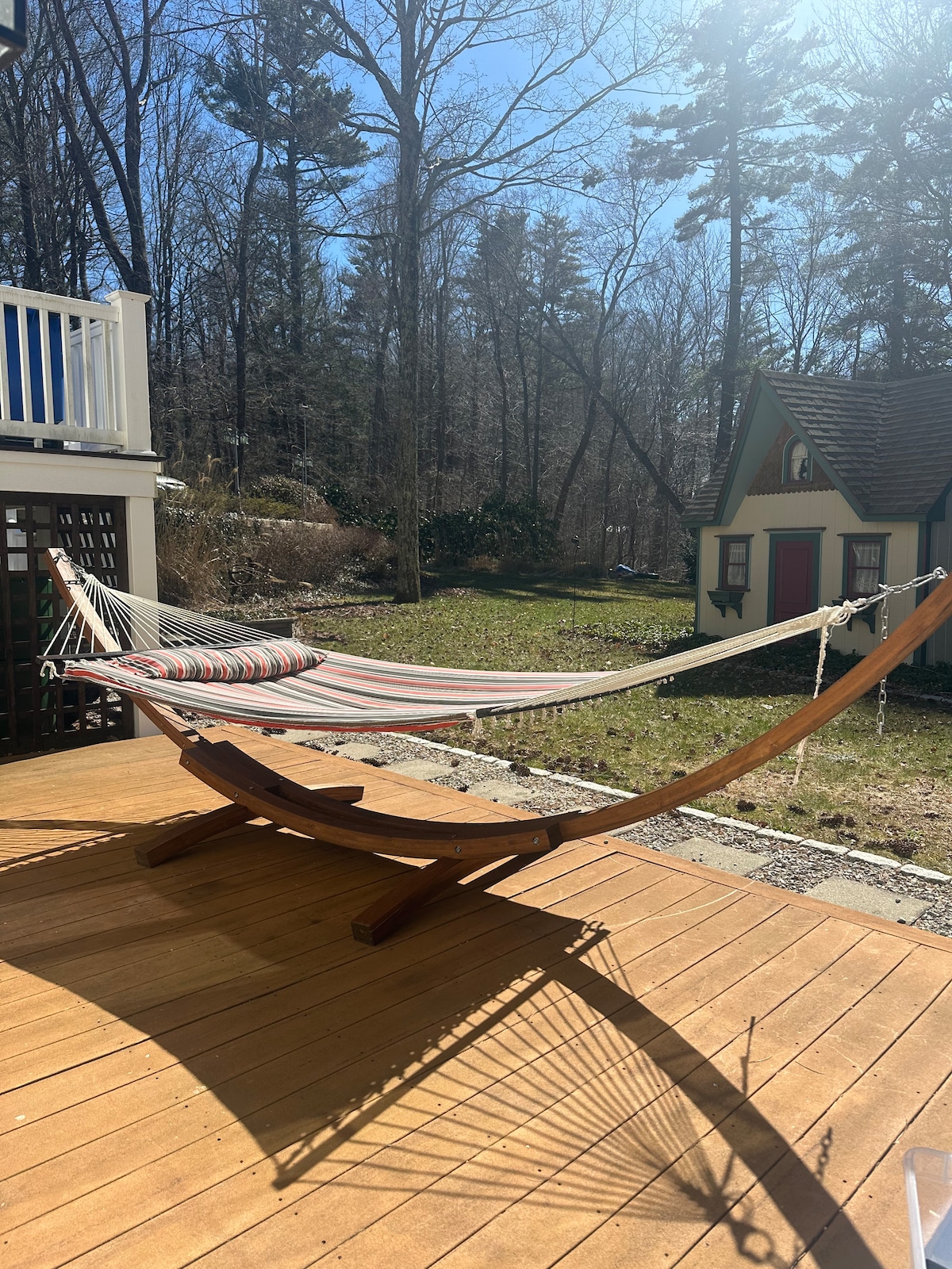 Σπίτι μακριά από το σπίτι σας! Σε μια γαλήνια, δασώδη περιοχή κρυμμένη μακριά από το δρόμο, θα βρείτε το διαμέρισμα της πεθεράς της σοφίτας του στούντιο. Όμορφη θέα με άγρια ζωή που συχνά εντοπίζεται. Καλά φωτισμένο με πολλά παράθυρα για να μπαίνει το πρωινό φως. Κατάλληλο για αλλαγή παραστάσεων ενώ εργάζεστε εξ αποστάσεως, μια σύντομη διαμονή μεταξύ των τοποθεσιών ή του πραγματικού προορισμού σας. Το UConn είναι λίγα λεπτά πιο κάτω. Ψάχνετε αντίκες; Stafford Speedway; Επισκέψεις Mohegan Sun ή Foxwoods; Λάτρης της υπαίθρου; Αυτό το μέρος λειτουργεί για όλους!