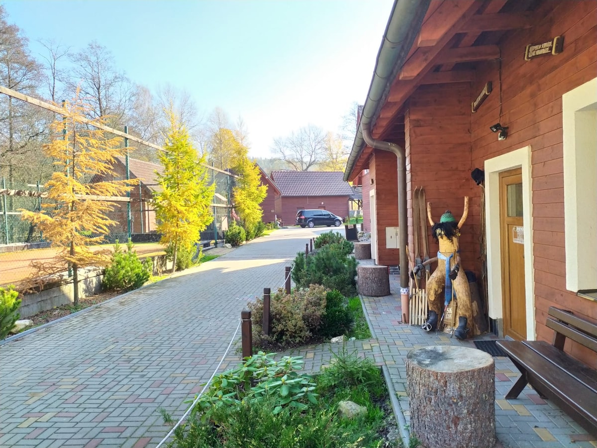 Our Traditional wooden house is situated in the valley of Jeseniky mountains with the picturesque views to its snowy peaks. In the neighborhood are ski slopes, cross country trails and other winter/summer sport centers. In summer, spring and autumn period, guests can combine hiking trips, cycling and swimming in pure water of flooded granite quarries. Find your ideal place for your family holiday and bring your pets to join you :)