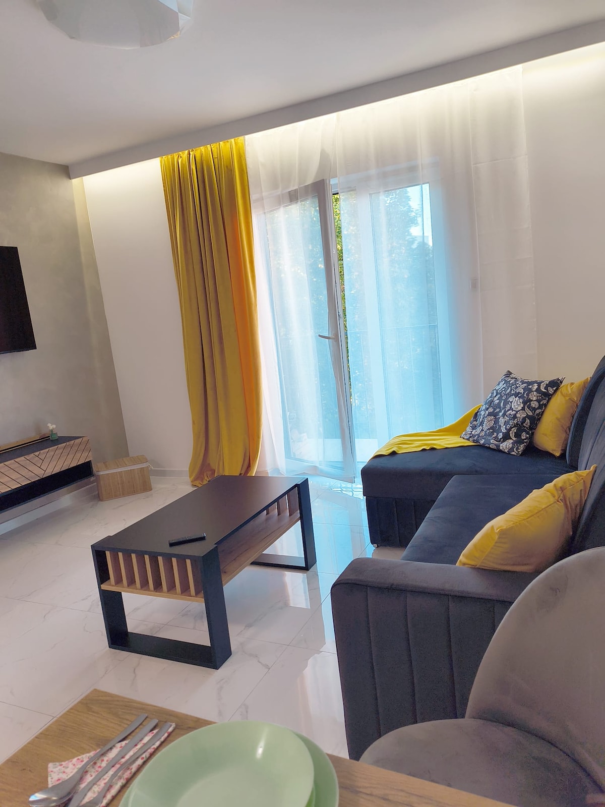 Εντελώς νέο διαμέρισμα. Παραδόθηκε το 2023. Φροντίσαμε για πλήρη λειτουργικότητα για δύο έως τέσσερις κατοίκους. Μια μεγάλη βεράντα, σας δίνει την ευκαιρία να χαλαρώσετε στον καθαρό αέρα.