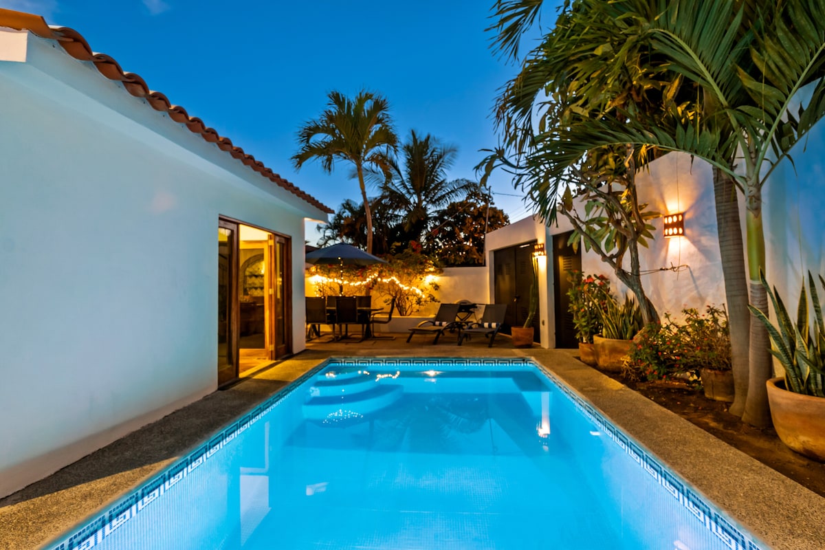 Πρόσφατα ανακαινισμένο σπίτι 2 υπνοδωματίων μόλις 5 τετράγωνα από την παραλία! Φωτεινό, ευρύχωρο και ευάερο με παροχές για μια εκπληκτική εμπειρία στην παραλία. Κλιματισμός και στα δύο υπνοδωμάτια, με ανεμιστήρες οροφής σε όλους τους χώρους. Σύγχρονη κουζίνα με πάγκους από γρανίτη. Εκτεθειμένα τούβλινα ταβάνια και μια μεγάλη σκιά μπροστά από το σπίτι. Περπατήστε μέχρι τις όμορφες παραλίες του Bucerias, την πλατεία της πόλης ή/και τα εστιατόρια και τα μπαρ. Το σπίτι μας είναι ιδανικό για δύο ζευγάρια ή μικρές οικογένειες. Hablamos Espanol.