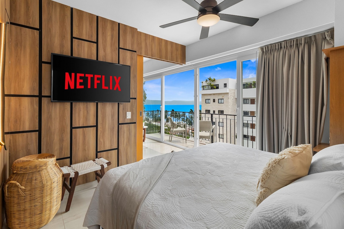 Νέο πολυτελές παραθαλάσσιο διαμέρισμα στην ΚΑΡΔΙΆ της Bucerías (Centro), ιδανικό για ηλιοβασιλέματα και αξέχαστες διαμονές. Λίγα βήματα από την παραλία και ατελείωτα εστιατόρια, μπαρ και ζωντανή διασκέδαση! Βρίσκεται σε υψηλό όροφο με μπαλκόνι που το περιβάλλει και εκπληκτική θέα 180 μοιρών στον ωκεανό. Οι αυτόματες περσίδες (πατήστε ένα κουμπί και απολαύστε τη θέα) και οι εκτεταμένες συρόμενες πόρτες δημιουργούν μια αίσθηση εσωτερικού-εξωτερικού χώρου. Πισίνα υπερχείλισης στην ταράτσα, πρόσβαση σε beach club, γυμναστήριο, ασφάλεια 24 ώρες το 24ωρο και ιδιωτικό πάρκινγκ. Μια εξαιρετική εμπειρία μπροστά στην παραλία.