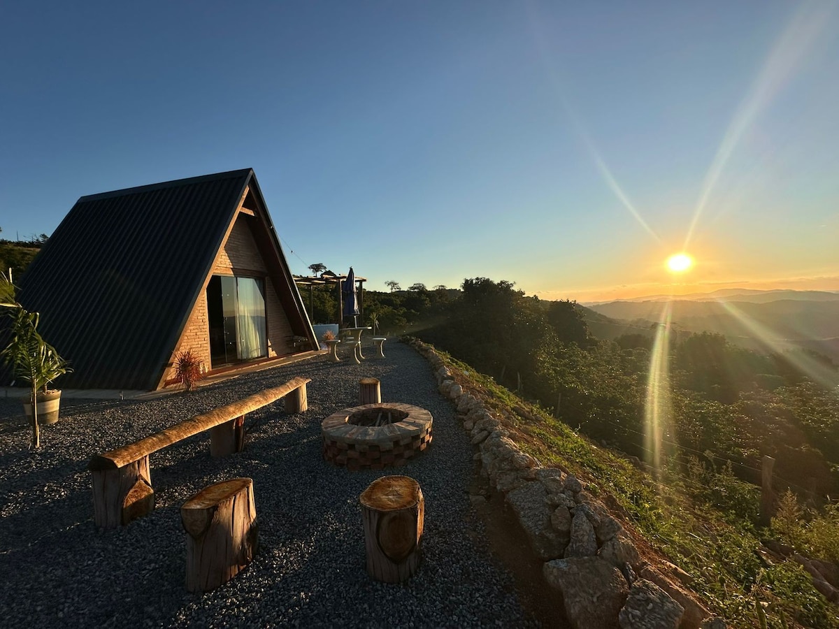 Esta acomodação elegante é perfeita para viagem em casal , Oásis na Montanha 🌳 O nosso espaço foi pensado para ser aquele refúgio no meio da natureza que todo mundo precisa de vez em quando. 🏠 O Chalé Ele é único e fica bem no topo da colina. O diferencial aqui é a localização: de um lado você vê o sol nascer e do outro o pôr do sol. A vista do vale é quase 360°, rodeada de verde e sossego. É o lugar perfeito para sentir a paz e a presença de Deus. 🌙 A Noite O céu aqui é um e espetáculo !