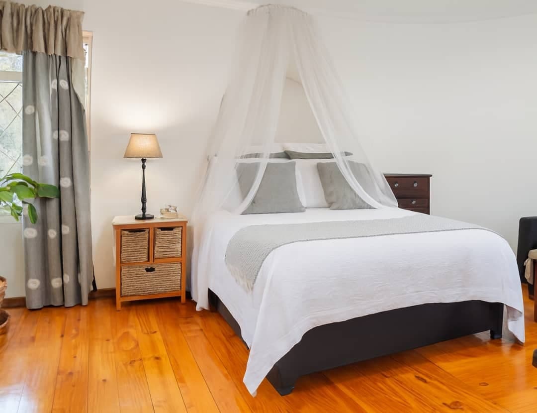 Cosy cottage with upstairs bedroom fitted with a double bed and sleeper couch, living room, kitchen and bathroom. Peaceful sanctuary nestled in a stunning garden only 9 minutes from the city, it offers the perfect blend of nature, comfort, and convenience, providing a safe and secure environment for all guests. Business travelers will find an escape from the city & Tourists exploring the country will appreciate the tranquil setting while conveniently, close to urban attractions.