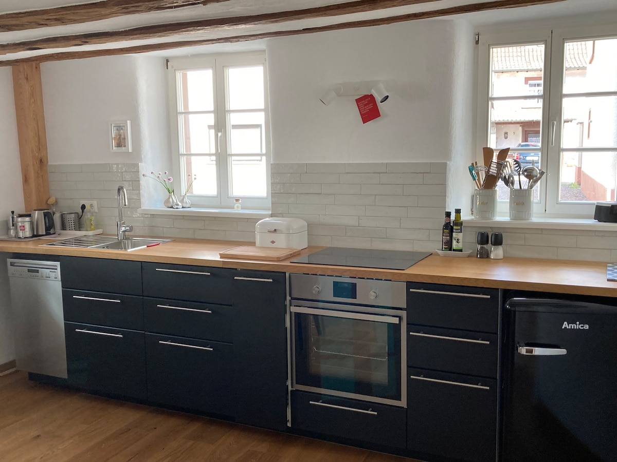 Το EyerHof - που ανήκει στην οικογένεια Eyer εδώ και τρεις γενιές - μια αγροικία άνω των 120 ετών που ανακαινίστηκε πλήρως από το 2019 - 2022 και τώρα συνδυάζει την ιδιαίτερη γοητεία μιας αγροικίας με το μοντέρνο βιομηχανικό στιλ. Δίπλα στη βεράντα, την αυλή και τον κήπο, υπάρχει ένας σταθμός μπάρμπεκιου με μεγάλη νέα ψησταριά αερίου Rösle και τον αχυρώνα που μπορεί να χρησιμοποιηθεί ως ένα άνετο σαλόνι. Το εσωτερικό του σπιτιού συνδυάζει το μισό ξύλινο με το σύγχρονο σίδερο, το ξύλο, τον ψαμμίτη, τους τοίχους από πηλό και το παλιό με το νέο 🖤