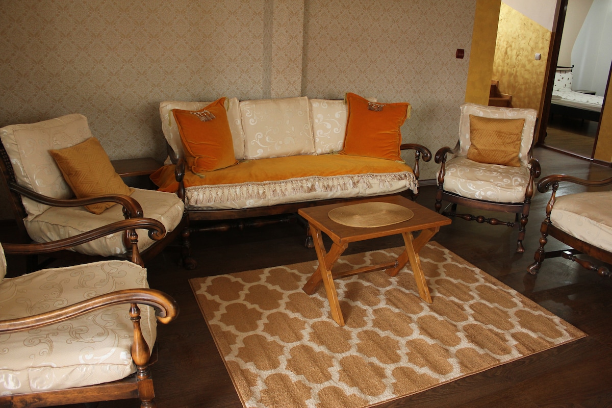 Αυτό το κομψό κατάλυμα είναι ιδανικό για χαλάρωση, προσφέροντας ένα γενναιόδωρο σαλόνι με κουζίνα στο ισόγειο και 2 δωμάτια στον επάνω όροφο με γαμήλιο κρεβάτι. Δωρεάν WiFi κλίμα ενδοδαπέδια θέρμανση Ζεστό νερό 24 ώρες το 24-ωρο τηλεόραση με μεγάλη οθόνη και Android πάρκινγκ στην αυλή. πρόσβαση σε σπα έναντι αμοιβής - πισίνα, τζακούζι και σάουνα παρέχουμε πρωινό, μεσημεριανό και δείπνο.