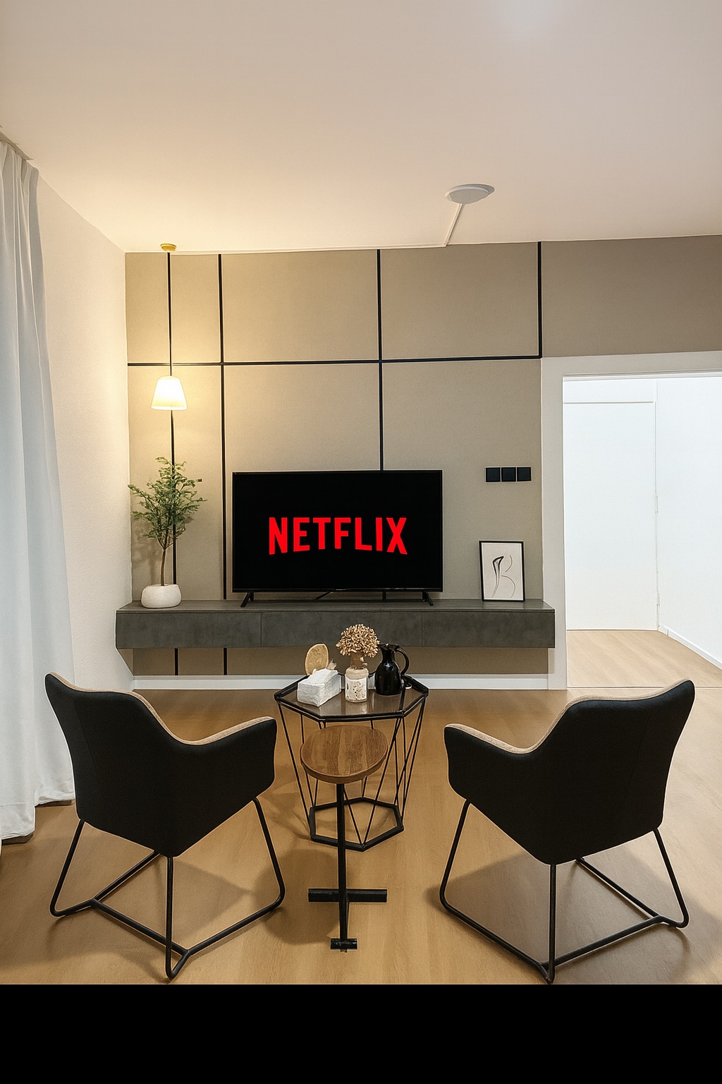Ένα πολυτελές διαμέρισμα με μοντέρνο και εκλεπτυσμένο σχεδιασμό που αντικατοπτρίζει έναν πολυτελή και άνετο τρόπο ζωής. Αποτελείται από ένα κομψό υπνοδωμάτιο και ένα ευρύχωρο σαλόνι με πολυτελή έπιπλα που παρέχουν μέγιστη άνεση, εξοπλισμένο με οθόνη 70 ιντσών για μια απαράμιλλη εμπειρία ψυχαγωγίας. Απολαύστε την γωνιά του καφέ σας σε μια ήσυχη και κομψή ατμόσφαιρα. Διατίθενται Wi-Fi υψηλής ταχύτητας και έξυπνο self check-in για να εξασφαλιστεί η ιδιωτικότητα και η εύκολη πρόσβαση. Μια ιδανική επιλογή για όσους αναζητούν ηρεμία και πολυτέλεια ταυτόχρονα.