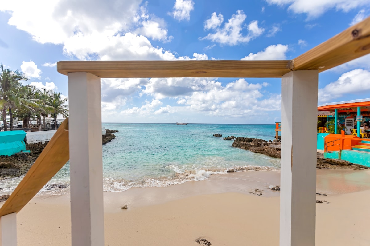 Escape to our vibrant beachfront studio at Maho Beach House! Steps from the world-famous Maho Beach, watch planes land from your doorstep. This ground-floor unit is perfect for solo travelers or couples, offering a full kitchen, workspace, and direct beach access via a secret boardwalk. Enjoy the lively neighborhood with restaurants & shops all within walking distance. Your perfect St. Maarten getaway awaits!