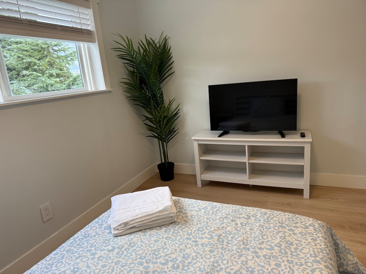 Modern, bright basement studio with queen bed and sofa bed. Fully equipped kitchenette includes cooktop, microwave, kettle, cookware, and flatware. Private bathroom with large walk-in shower and in-suite washer/dryer. Located in a quiet neighborhood near SFU—easy access by foot, transit, or car. Just 30 mins to Downtown Vancouver by car, or 45–60 mins by transit. Clean, comfortable, and stocked with all necessities. Note: We love pets but we DO NOT allow cats.