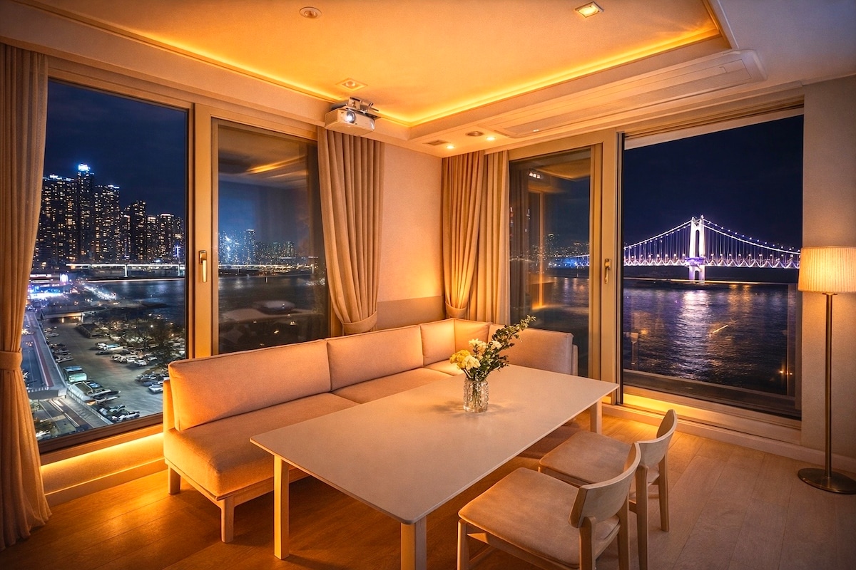 Κορυφαία καταλύματα / Θέα στον ωκεανό και τη γέφυρα Gwangan + θέα στην πόλη Haeundae / 3 δωμάτια (2 ευρύχωρα υπνοδωμάτια + σαλόνι) / 3 κρεβάτια queen size / δωρεάν πάρκινγκ / επίπεδο ξενοδοχείου 5 αστέρων