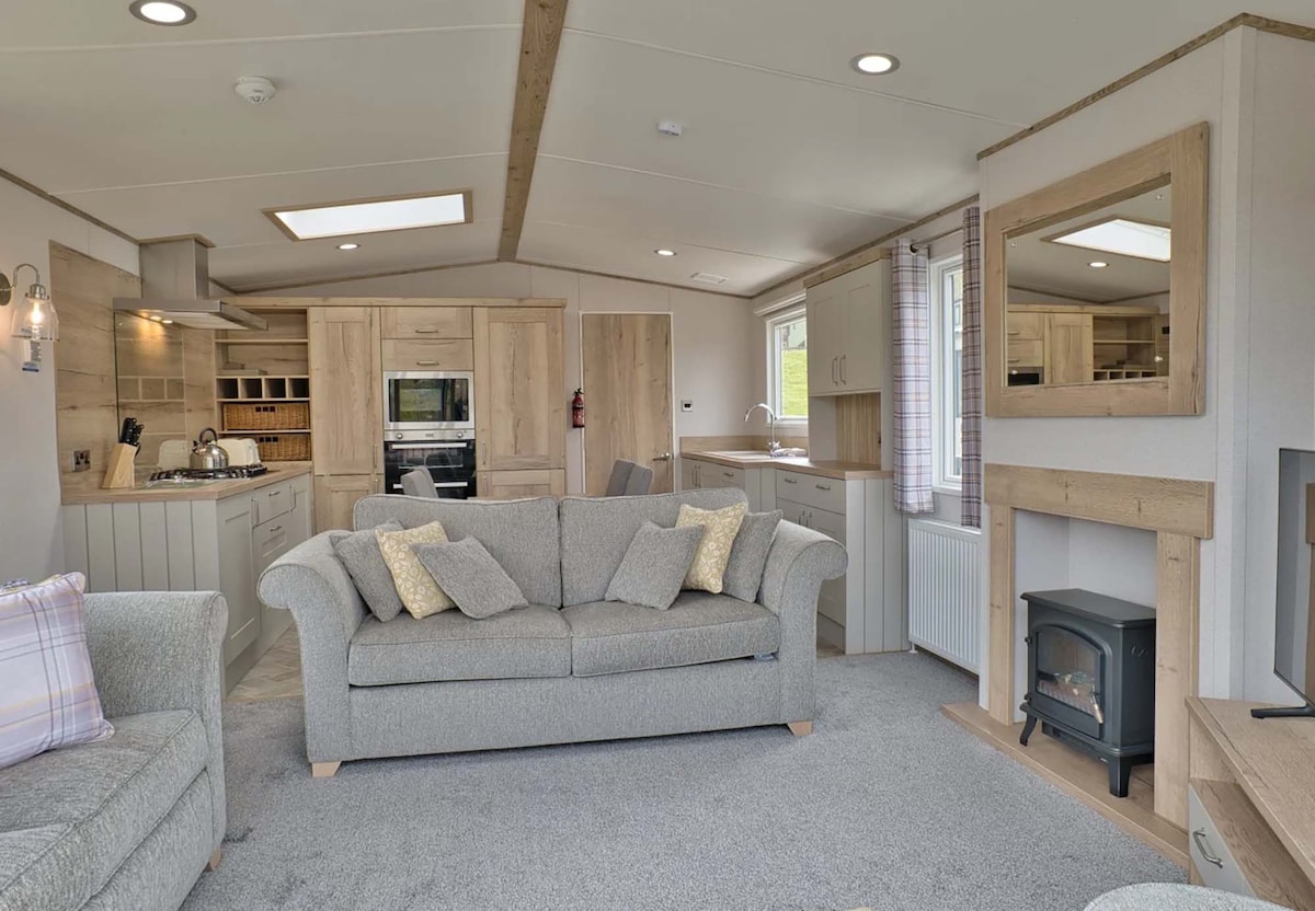 Escape to our charming two-bedroom lodge, perfect for families or couples looking to relax and unwind. Tucked away at the end of the park, you'll enjoy peace, privacy, and stunning natural surroundings. The lodge features a fully equipped brand-new kitchen, stylish decor throughout, and a spacious deck with a hammock – perfect for morning coffee or evening stargazing. Whether you're cooking a homemade meal or exploring the nearby nature trails, this is your perfect getaway spot.