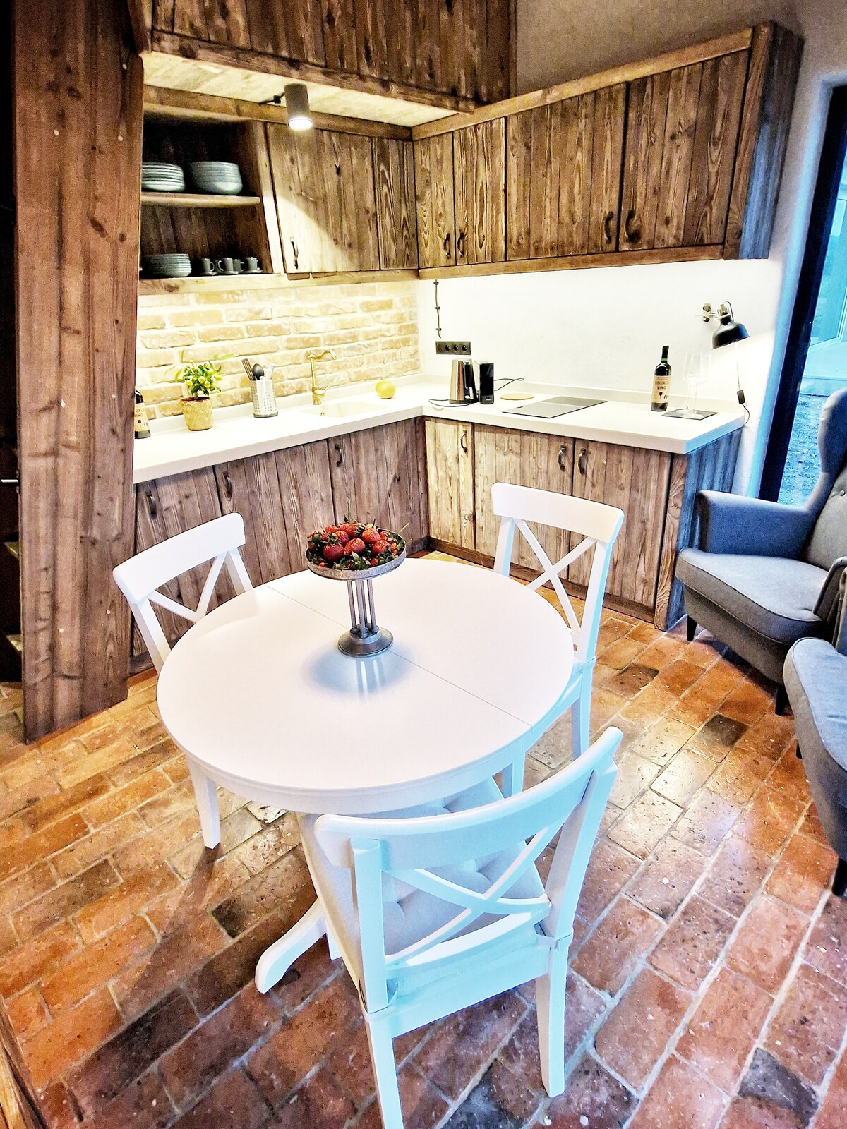 Ένα άνετο και μοντέρνο (ολοκληρωμένο το 2019) διαμέρισμα για 2 έως 4 άτομα που βρίσκεται στον τελευταίο όροφο του ξενώνα, που αποτελεί μέρος ενός μεγάλου (36 εκτάρια) ιδιωτικού πρώην οικισμού μύλων "Tenderowizna", που βρίσκεται στο Πάρκο Jurajski. Το διαμέρισμα έχει εμβαδόν 50 τ.μ. και περιλαμβάνει υπνοδωμάτιο, ανοιχτό χώρο με πλήρως εξοπλισμένη κουζίνα, τραπεζαρία και σαλόνι με καναπέ-κρεβάτι (για 2 άτομα), μπάνιο με τουαλέτα και ντους. Wi-fi. Βεράντα (12m2) με θέα σε λίμνες και ποτάμι. Ένας καταρράκτης ακούγεται πίσω από τα παράθυρα.
