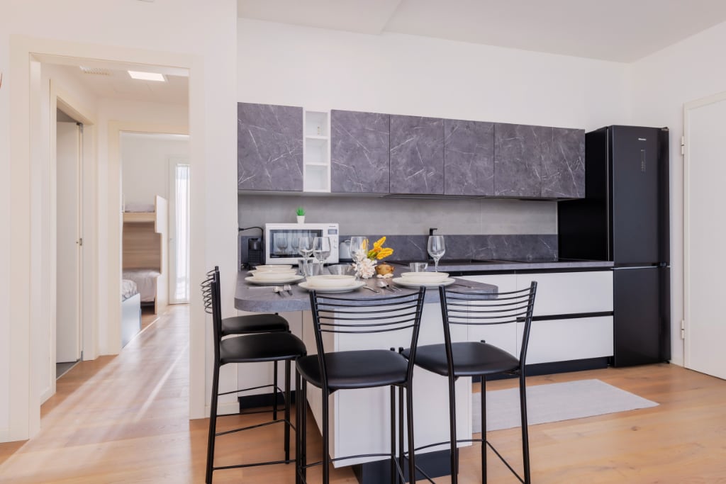 Sweet Home Village è un residence a gestione familiare a Jesolo Lido gestito da Alessandro e Giulia. Porta tutta la famiglia in questo fantastico residence dallo stile caraibico immerso nella natura a pochi passi dal mare, un alloggio unico con tanto spazio per divertirsi formato da un appartamento di 80 mq composto da un luminoso soggiorno con patio esclusivo, 2 camere, 2 bagni. Disponibile in spazio condiviso una splendida piscina a sfioro con sdraio e ombrelloni privati.