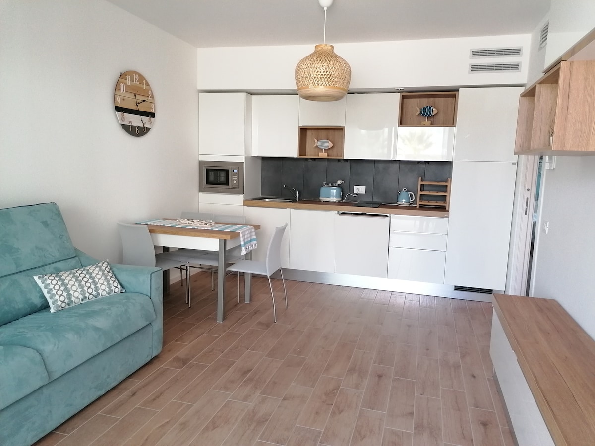 Apartment in Nember square of new construction 150mt from the beach with swimming pool and private parking.<br>The apartment is on the ground floor and consists of a double bedroom, a room with two single beds and a sofa bed in the living room, two terraces with garden, a bathroom with 80x120 shower tray and a small laundry room with washing machine.<br>Kitchen with induction hob, microwave and dishwasher.<br><br>Identification code: 027019-Loc-03452<br>Energy classification: A4, Ipe 2.