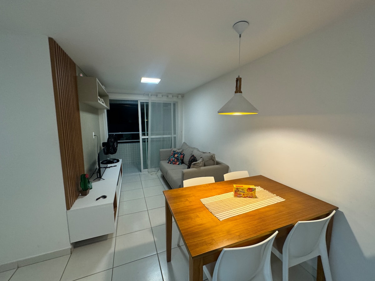 Το διαμέρισμα διαθέτει κλιματιστικό split, ηλεκτρική ντουζιέρα, Smart TV, φριτέζα αέρα, μίνι ψυγείο, καφετιέρα, τοστιέρα, φούρνο μικροκυμάτων, μπλέντερ, σκεύη για γρήγορα σνακ και εναλλασσόμενο πάρκινγκ. Το διαμέρισμα δεν έχει κουζίνα. Βρίσκεται στο κτίριο Flat Israel στην παραλία του Tambaú, δίπλα στο εστιατόριο Varandas de Tambaú, δίπλα στην έκθεση χειροτεχνίας και σε απόσταση 5 λεπτών με τα πόδια από τις αναχωρήσεις των σκαφών για τις φυσικές πισίνες του Picãozinho/Seixas.