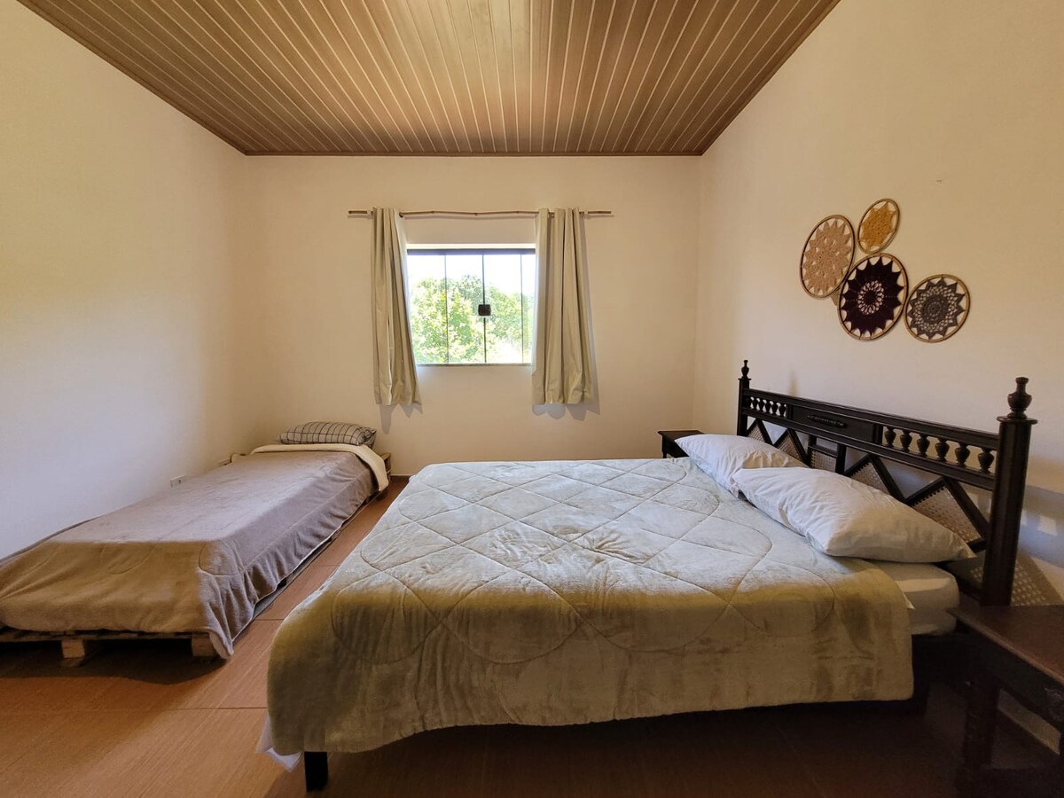 Καλώς ήρθατε στην Ecovila στη Rocinha, δίπλα στον αυτοκινητόδρομο Paulo Virginio. Το ιδιωτικό μας δωμάτιο, με δύο κρεβάτια (διπλά και μονά), προσφέρει θέα στον κήπο και το δάσος. 2 Κοινόχρηστα μπάνια, πάντα καθαρά και πολύ ευρύχωρα. Πλήρης υποδομή στη γειτονιά: αρτοποιείο, αγορά, κρεοπωλείο, φαρμακείο και κέντρο υγείας. Εύκολη πρόσβαση με λεωφορείο (50 μ.) και μεγάλο πάρκινγκ. Τοπικά βιολογικά λαχανικά και φρούτα. Απολαύστε τη γαλήνη και τη σύνδεση με τη φύση μαζί μας!