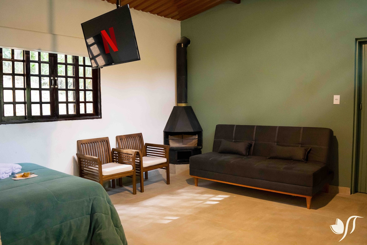 Ανακαλύψτε την ιδανική απόδραση για εσάς! Βρίσκεται σε μια φάρμα κοντά στη Rodovia D. Pedro, η μοντέρνα και ζεστή καλύβα μας είναι το ιδανικό μέρος για όσους αναζητούν ηρεμία και ξεχωριστές στιγμές. Εδώ θα βρείτε: Υδρομασάζ, πανοραμική θέα και ένα αποκλειστικό περιβάλλον,σχεδιασμένο για να προσφέρει *ηρεμία και ησυχία*. Φανταστείτε να ξυπνάτε με πουλιά να κελαηδούν, να απολαμβάνετε το πρωινό σας με θέα τα βουνά και να τελειώνετε τη μέρα σας με ένα λουτρό με υδρομασάζ κάτω από τον έναστρο ουρανό.