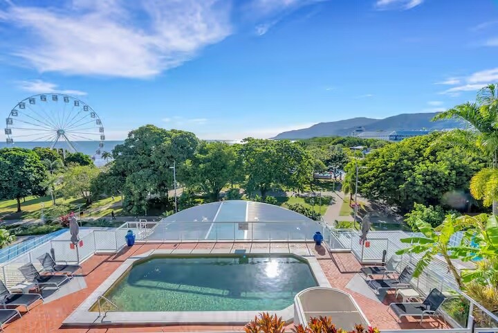 Ακριβώς στο κέντρο της πόλης πάνω από το εστιατόριο, νυχτερινές αγορές και εστιατόρια με τα πάρκα Esplanade και πισίνα απέναντι και σούπερ μάρκετ και βιβλιοθήκη στο πίσω μέρος. Απολαύστε εκτεταμένη θέα στο Trinity Inlet από το δικό σας ιδιωτικό μπαλκόνι και χαλαρώστε! Δωρεάν απεριόριστο ευρυζωνικό internet και phonecalls εντός της Αυστραλίας. Δωρεάν χώρο στάθμευσης στο χώρο του ξενοδοχείου, μια μικρή βόλτα στο Reef Terminal και περιβάλλεται από καφετέριες και χώρους ψυχαγωγίας, αλλά ήρεμη και ιδιωτική. Η τέλεια απόδραση!