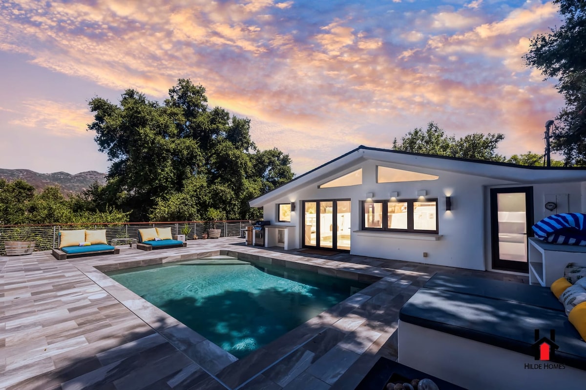 Καλώς ήρθατε στο Eichler House στο Thousand Oaks! Αυτό το μοντέρνο κατάλυμα με στιλ από τα μέσα του αιώνα διαθέτει πισίνα, τζακούζι, τζάκι και ενσωματωμένο μπάρμπεκιου, ιδανικό για διασκέδαση ή χαλάρωση. Πλήρως ανακαινισμένο με σύγχρονες ανέσεις, διαθέτει αίθριο, ανοιχτή διαρρύθμιση και παράθυρα από το δάπεδο μέχρι την οροφή για άνετη διαβίωση σε εσωτερικό και εξωτερικό χώρο. Βρίσκεται σε ιδιωτικό οικόπεδο που πηγαίνει σε ανοιχτό χώρο, προσφέρει ηρεμία ενώ απέχει λίγα λεπτά από μονοπάτια πεζοπορίας, ψώνια και 30 λεπτά από την παραλία.