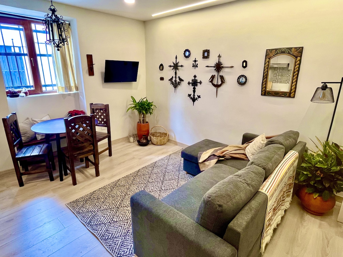 "Άνετο τμήμα στην καρδιά της Κουένκα" Βρίσκεται σε ένα κτίριο στο ιστορικό κέντρο της Κουένκα, ιδανικό για έως 6 άτομα, με εκπληκτική ταράτσα που προσφέρει θέα 360 μοιρών. Διαθέτει 2 υπνοδωμάτια, σαλόνι με καναπέ-κρεβάτι, κουζίνα και τραπεζαρία, 2 μπάνια, 1 πλήρες και ένα κοινόχρηστο. Κοντά σε εκκλησίες, εστιατόρια, μουσεία και άλλα αξιοθέατα, ιδανικό για οικογένειες ή παρέες που αναζητούν εξαιρετική τοποθεσία. Κάντε κράτηση τώρα και ζήστε μια αξέχαστη εμπειρία!