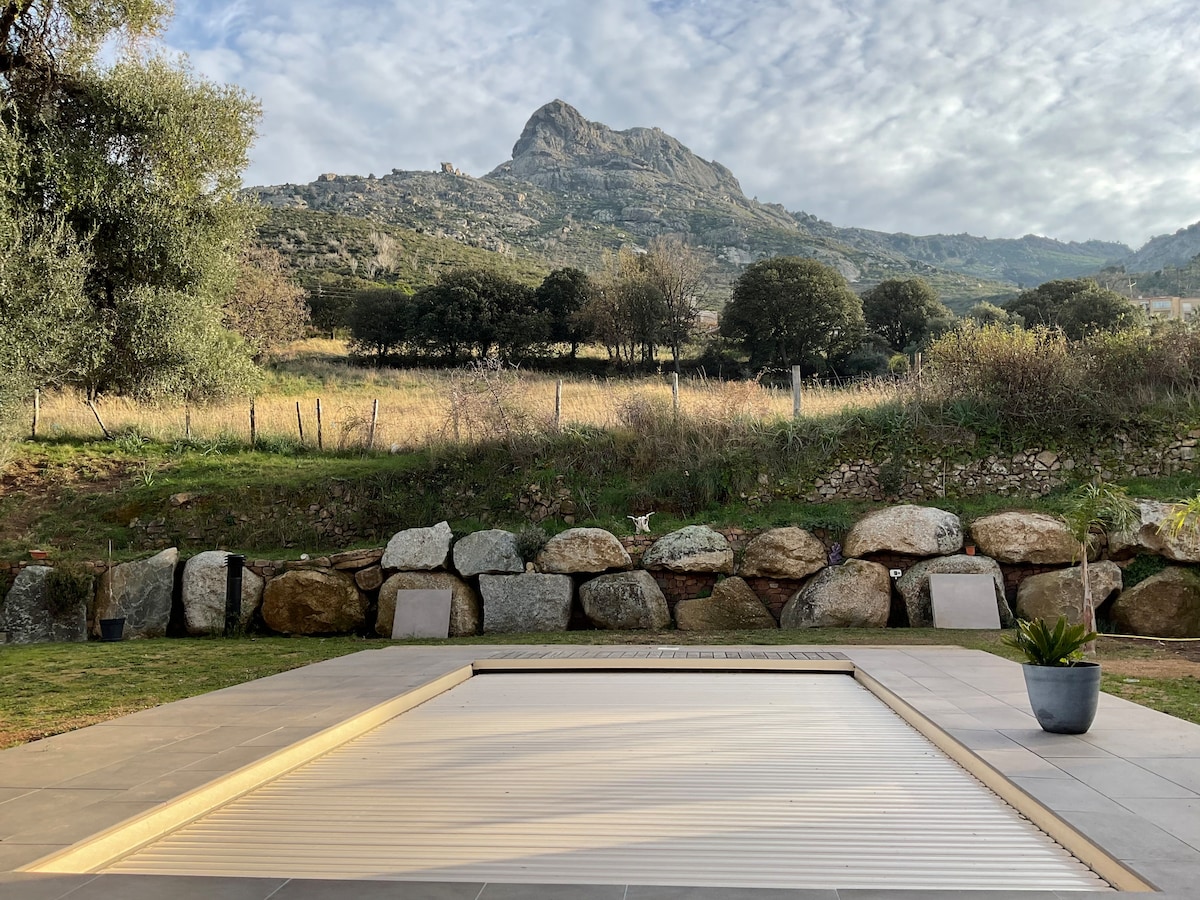 Villa neuve 40m² entre Calvi et Calenzana. Idéal 2 à 4 pers. max. 100% PRIVATIF : Profitez d'un usage exclusif de la maison, du jardin et de la piscine en pierre de Bali. Calme garanti. SITUATION : • 6 min de la plage de Calvi. • 5 min du départ du GR20. • 8 min de l'aéroport. CONFORT : • Linge de lit et serviettes fournis. • Parking privé devant la villa. • Proche commerces. Location à la semaine. Un cocon moderne rien que pour vous !