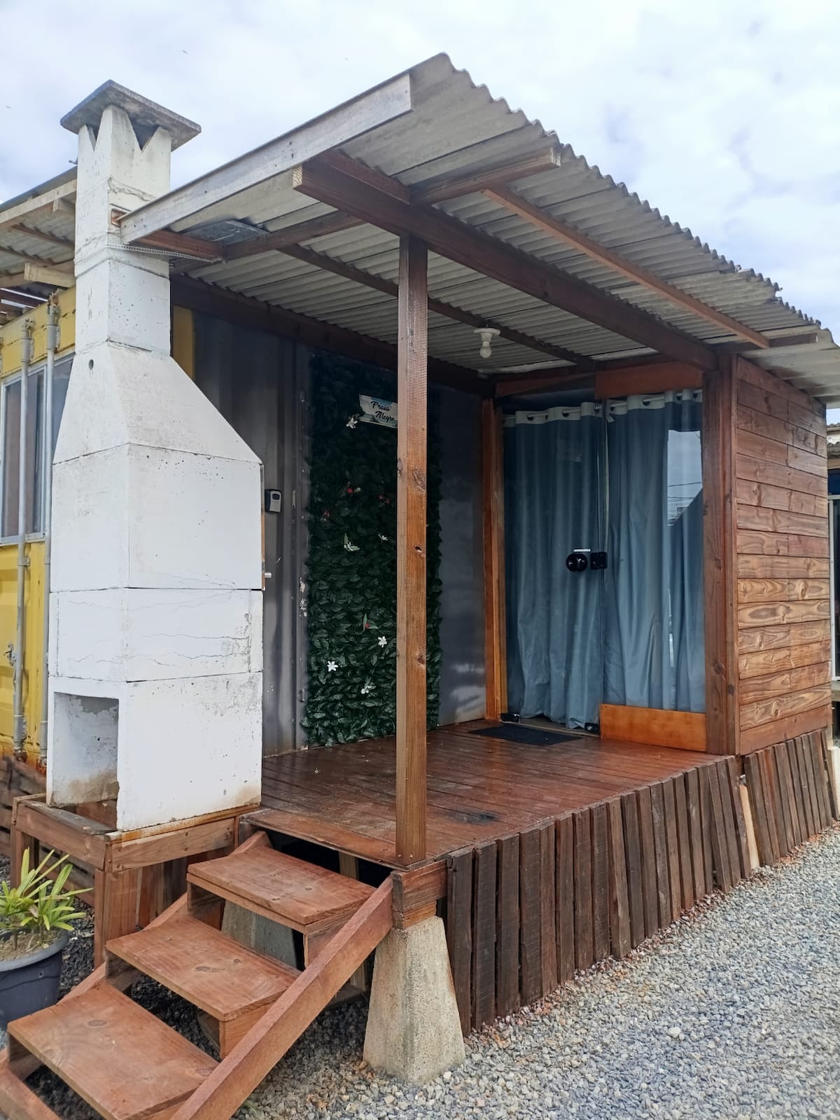Studio em um Container, com projeto moderno, prático e harmonioso, todo sob medida, acomoda até 03 hóspedes + 01 Pet MÍNIMO 05 DIÁRIAS nas FESTAS FIM DE ANO. São 15m2 internos + 12m2 varanda. Cozinha completa, banheiro e deck coberto privativo, Smart TV, Wi-Fi Gratuito, Ar Condicionado Split, tudo para oferecer qualidade, conforto e aconchego. Espaço único privilegiado em meio a natureza preservada onde o canto dos pássaros será a trilha sonora de suas férias. Estamos a 05 min a pé da praia
