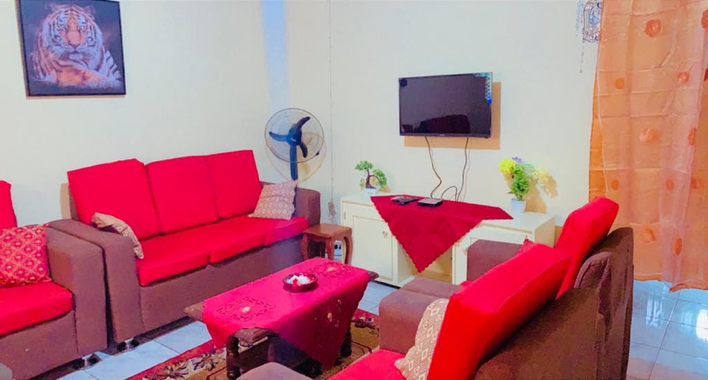 Paisibles apparts meublés de 3 chambres, un salon, une cuisine, une cuisine, terrasse au quartier Omnisport à moins de 10 minutes du centre de la ville de Yaoundé. Parking, Wi-fi, climatisation, machine à laver, micro-onde, Blender, Bouilloire, Eau chaude, Conciergerie 24h/24, aide au nettoyage, groupe électrogène, ... Prix attractifs!