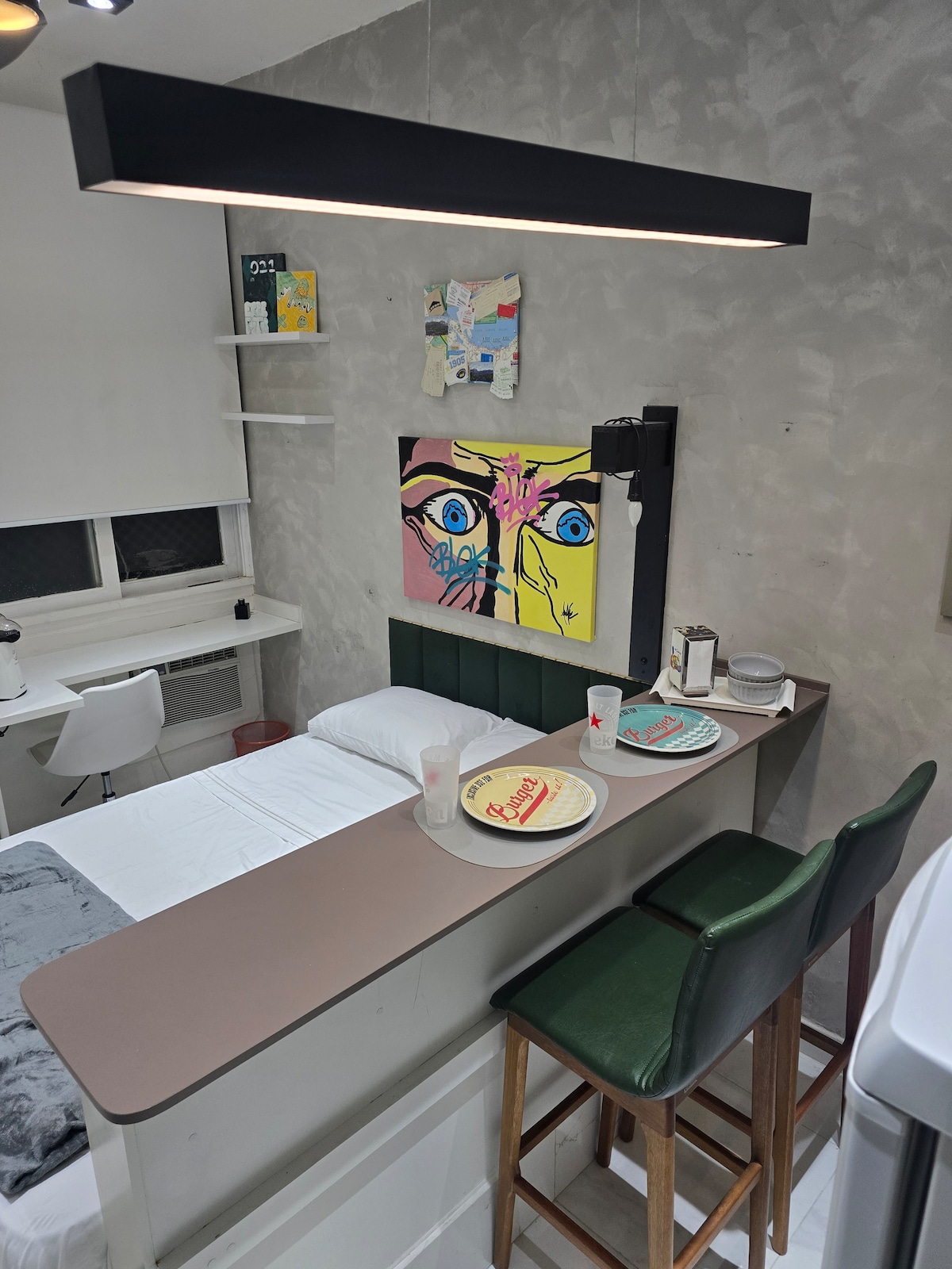 Νέο στούντιο σε οικογενειακή πολυκατοικία, που βρίσκεται στο κέντρο της πόλης Νιτερόι, με θέα στον κόλπο Γκουαναμπάρα, τη γέφυρα Ρίο-Νιτερόι και τον Χριστό Λυτρωτή. Ακριβώς μπροστά από τον τερματικό σταθμό λεωφορείων, λίγα μέτρα από τα πορθμεία, το εμπορικό κέντρο Plazza και τα νοσοκομεία. Wi-Fi 500Mb Smart TV με Youtube. Πόρτα με ηλεκτρονικό άνοιγμα με συγκεκριμένο κωδικό πρόσβασης - check in: Θα λάβετε έναν κωδικό για πρόσβαση στο διαμέρισμα, παρέχοντας μεγαλύτερη ασφάλεια και ευκολία στη διαμονή σας.