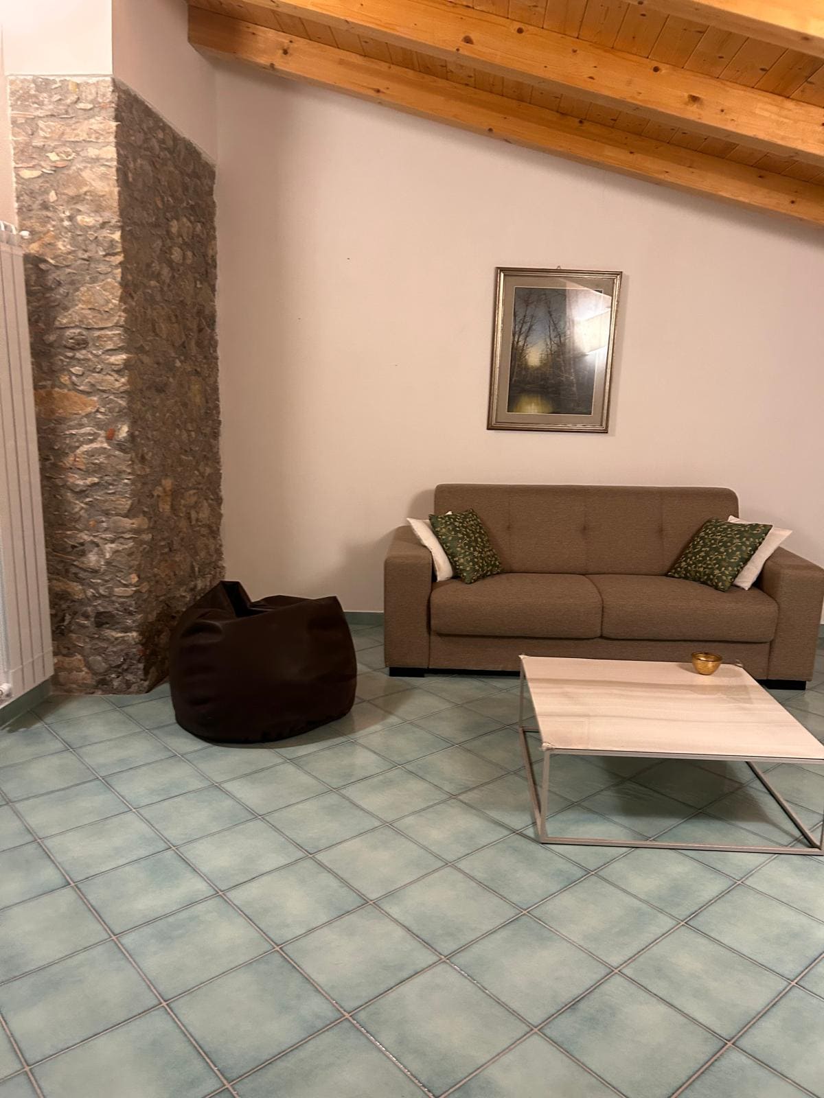 Very panoramic apartment, 40 m² with 5 beds, independent entrance, living room with kitchenette, fireplace, single or double sofa bed, single bed, double bedroom, bathroom with shower, terraces and outdoor tables. Simple furnishings, equipped with dishwasher, oven, fridge, TV, washing machine, heating. Parking inside the gate. About 200 meters away. municipal swimming pool located in a pine forest, quiet and operational from 6/7 to 15/9. The "blue flag" sea is about 15 minutes away by car.