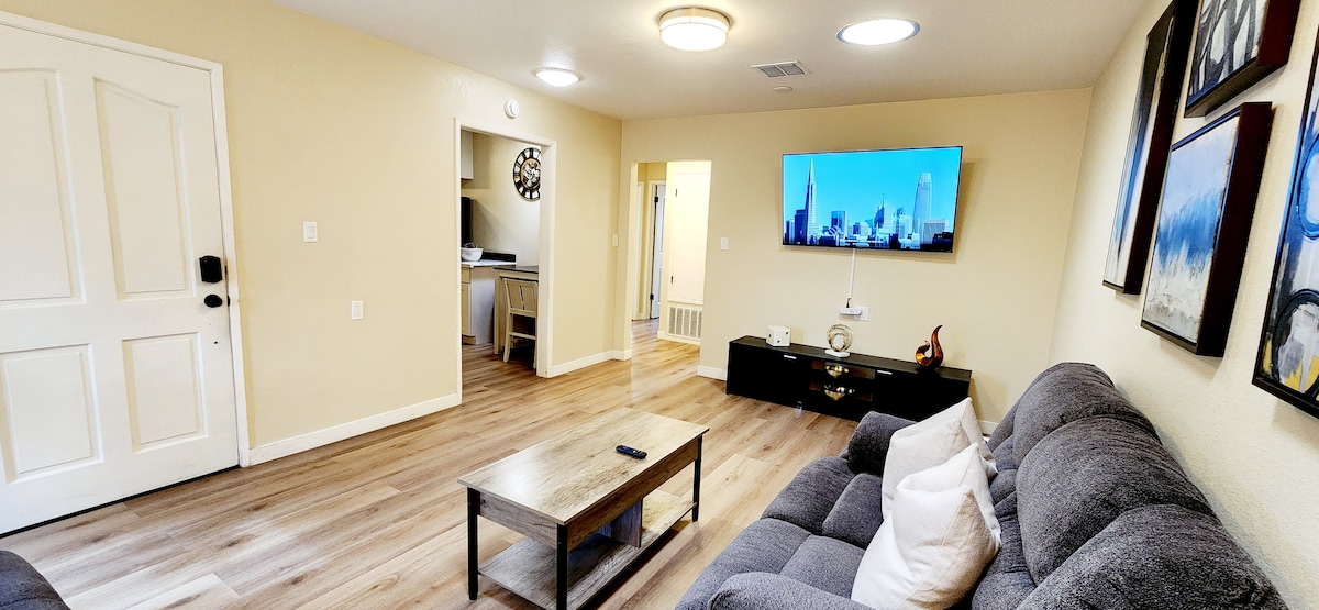 Χαλαρώστε μετά από μια μέρα στο πρόσφατα ανακαινισμένο διαμέρισμά μας. Βρισκόμαστε σε κεντρική τοποθεσία στο Menlo Park της Καλιφόρνια. Ακριβώς 2 μίλια μακριά από το Πανεπιστήμιο του Στάνφορντ και το εμπορικό κέντρο και 1,7 μίλια από τα κεντρικά γραφεία της Meta. Θα έχετε ολόκληρη τη μονάδα διαμερίσματος στη διάθεσή σας, συμπεριλαμβανομένης 1 δωρεάν καθορισμένης θέσης στάθμευσης, μαζί με όλα τα βασικά είδη πρώτης ανάγκης. Ιδανικό για ένα βραχυπρόθεσμο επαγγελματικό ταξίδι, μια επίσκεψη στο Στάνφορντ ή μια μακροπρόθεσμη διαμονή!