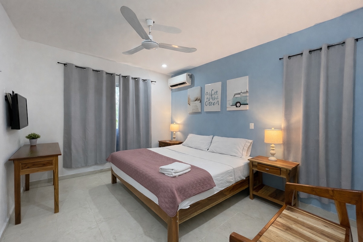 Καλώς ήρθατε στο Kai Blue 4, το ιδιωτικό καταφύγιό σας στον δεύτερο όροφο που έχει σχεδιαστεί για να σας προσφέρει άνεση και μια πινελιά παραθαλάσσιου στιλ. Αυτό το διαμέρισμα ενός υπνοδωματίου είναι ένας ήσυχος και μοντέρνος χώρος, ιδανικός για τη διαμονή σας στο Campeche.
