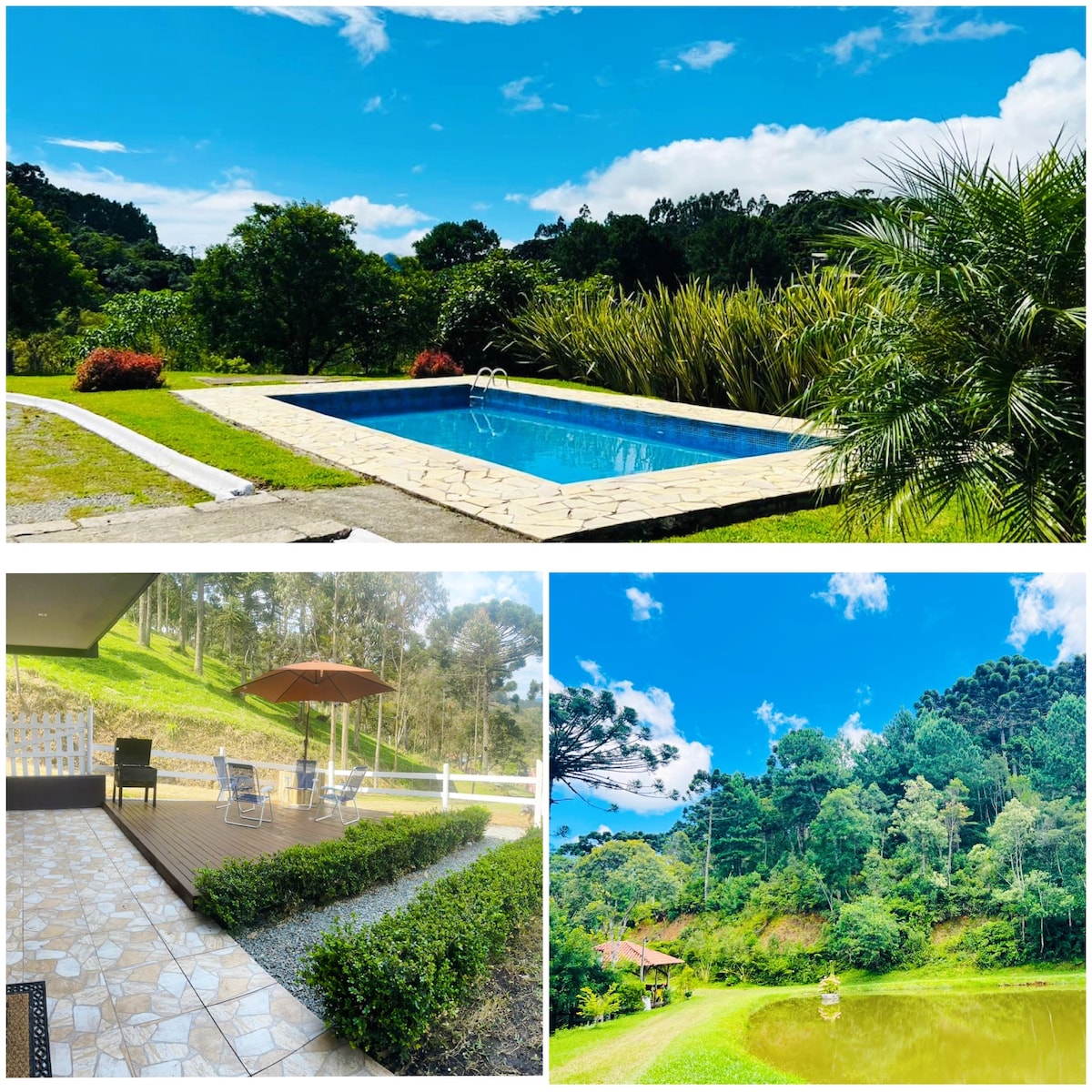 Venha passar o dia ou pernoitar na Pousada Reserva Verde! Uma experiência de imersão junto à natureza. Apartamento térreo com piscina e lago para pesca, andar de caiac e stand Up. Piscina (compartilhada) pois temos mais casa para alugar aqui na propriedade. Disponibilizamos: Churrasqueira no quiosque frente ao lago com banheiro externo. Churrasqueira móvel no Deck com Ombrelone, cadeiras e kit churrasco. Cozinha completa Quarto com cama queen e bicama e roupa de cama.
