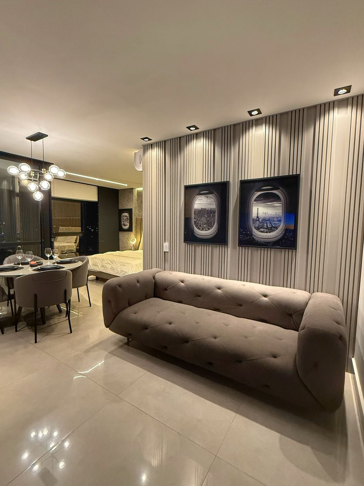 Estúdio moderno no Jardim dos Estados, com vista panorâmica e estrutura completa. Acomoda até 4 pessoas (cama queen + sofá-cama), tem ar-condicionado, Wi-Fi 300mbps, cozinha equipada, duas Smart TVs e garagem coberta privativa. No prédio: piscina aquecida, piscina com borda infinita, sauna seca, academia, coworking, salão de jogos e lavanderia (uso pago). Portaria 24h, elevador panorâmico e muito conforto em uma das melhores localizações da cidade.