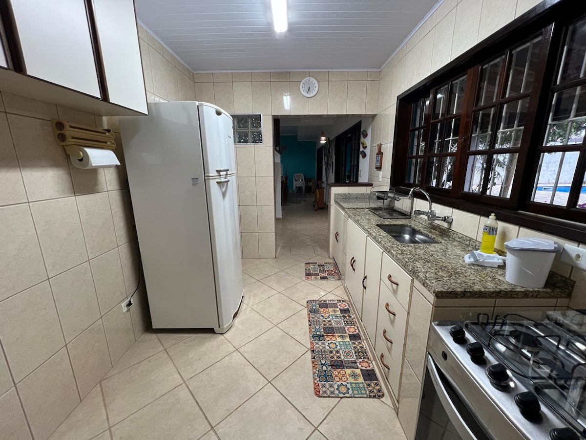 Ολόκληρο σπίτι με αυλή και κήπο, για να ακούτε τον ήχο των πουλιών που επισκέπτονται το σπίτι. Ισόγειο σε νεοκλασικό στιλ μπανγκαλόου σε μια καλά τοποθετημένη γειτονιά, λίγα μέτρα από την κεντρική λεωφόρο της Κανανέια. Σουπερμάρκετ, αρτοποιεία, φαρμακεία. Το 📍check-in και το check-out μπορεί να είναι ευέλικτα ανάλογα με τη διαθεσιμότητα της ημέρας και μπορεί να είναι αργά το απόγευμα. (Ελέγξτε τη διαθεσιμότητα των ωρών με τον οικοδεσπότη). 🐕 Πρέπει να περιλαμβάνονται στην κράτηση στην ακριβή ποσότητα. 🛏️ Φέρτε μια κουβέρτα ή ένα σκεπάσμα για να σκεπαστείτε.