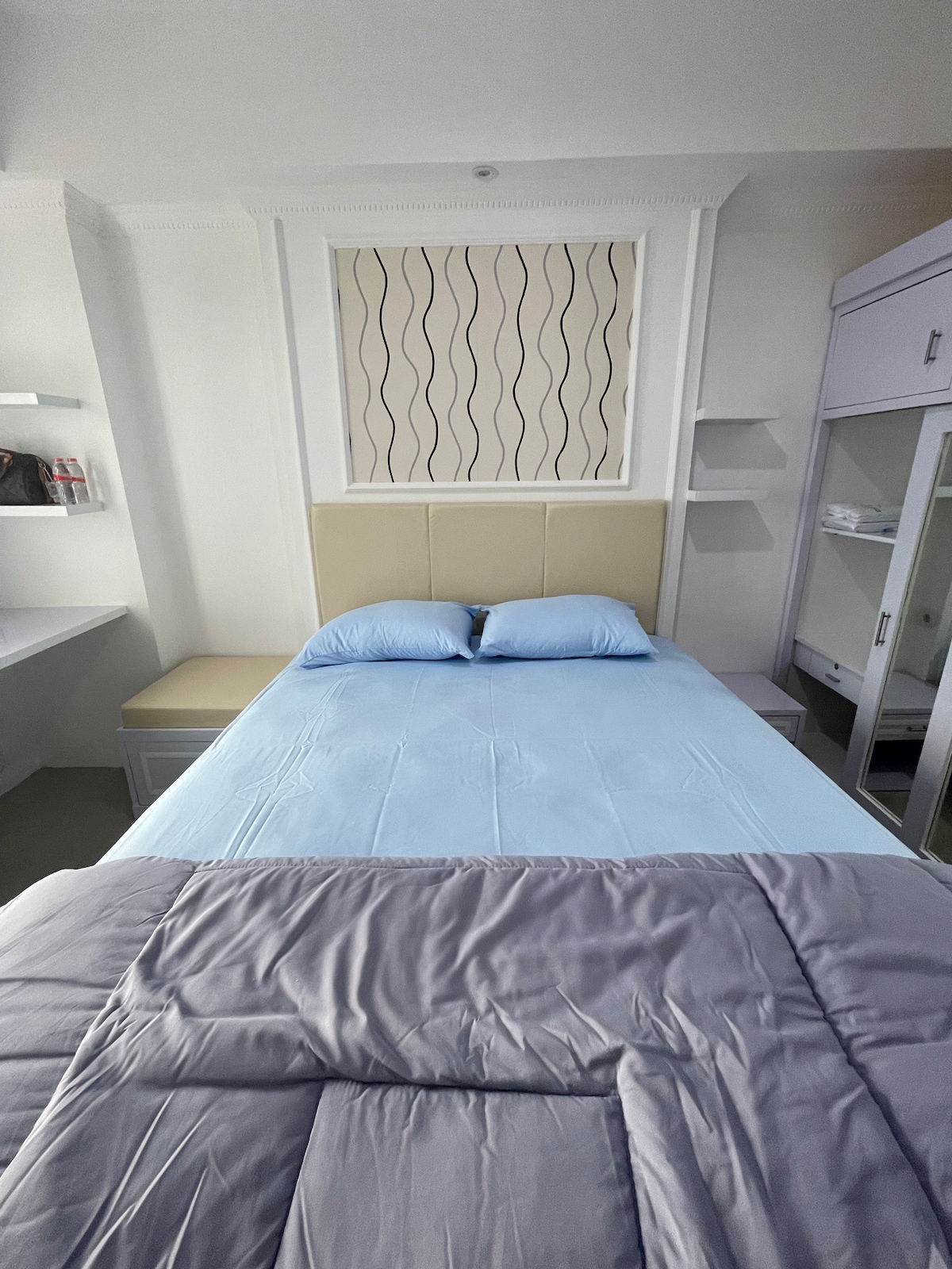 Πολύ άνετο διαμέρισμα δύο υπνοδωματίων, που βρίσκεται στο MG Suites Πλήρως επιπλωμένο με τηλεόραση, καναπέ, 2 άνετα κρεβάτια, wifi. 5 λεπτά από το Simpang Lima, το Tugu Muda και το εμπορικό κέντρο Paragon. 15 λεπτά από το αεροδρόμιο, τον σιδηροδρομικό σταθμό και την παλιά πόλη του Semarang. Διαθέσιμο για βραχυπρόθεσμη και μακροπρόθεσμη διαμονή. Ευρύχωρο, άνετο και καθαρό. Το κτίριο κοντά στο Setos (Πλατεία της πόλης Semarang) και την εσωτερική παιδική χαρά PlaPlay.