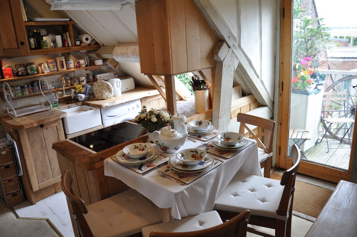 Καλώς ήρθατε στο Honeysuckle, το πολυτελές τροχόσπιτό μας με εκπληκτική θέα στα λιβάδια των Τσίλτερνς. Τα βράδια, καθίστε και ατενίστε το ηλιοβασίλεμα γύρω από το τζάκι εξωτερικού χώρου ή χαλαρώστε άνετα στον εσωτερικό χώρο με τη σόμπα ξύλων. Είμαστε μια ενεργή φάρμα και μπορεί να δείτε το τρακτέρ να περνάει ενώ ταΐζουμε τα κοπάδια μας με πρόβατα Texal (θα γεννιούνται αρνιά ακριβώς μπροστά σας τον Απρίλιο του 2026!) και τις αγελάδες Limousin να βόσκουν στα χωράφια, ή να παρακολουθήσετε τα πολλά πουλιά. Έχετε τον δικό σας απομονωμένο, περιφραγμένο και ιδιωτικό κήπο με καθίσματα.