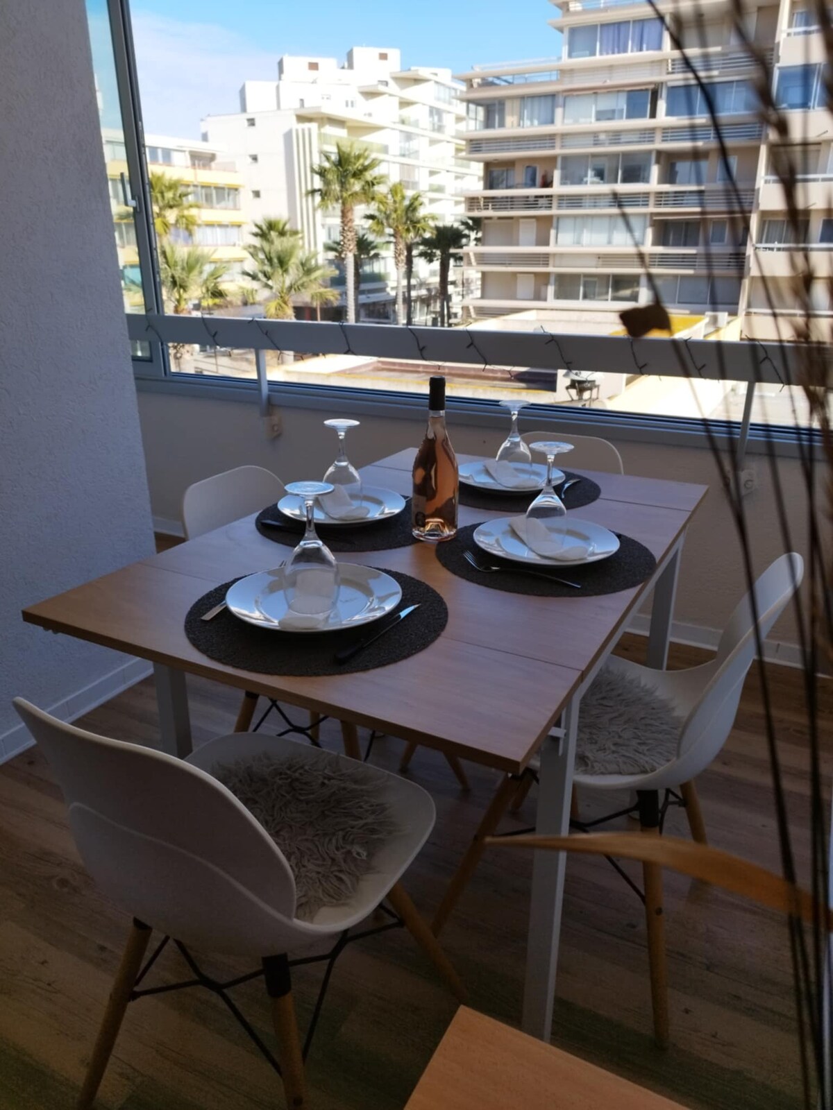 Appartement en front de mer, 6e étage avec ascenseur situé dans la résidence Casino au pied même de la place Méditerranée.ENTRÉE A L’ARRIÈRE DU BÂT Refait à neuf Peut accueillir 4 pers Non fumeur sauf sur le balcon ( Attention restaurant en bas pas d’eau) Parking sécurisé couvert sous l'immeuble inclus dans le prix+ parking aérien public gratuit toute l’année sauf juillet août. Smart TV 55’ HITACHI Fibre Machine à lavante séchante 8kg 5 kg LG 03/23 Cuisine équipée Climatiseur Mitsubishi 04/2