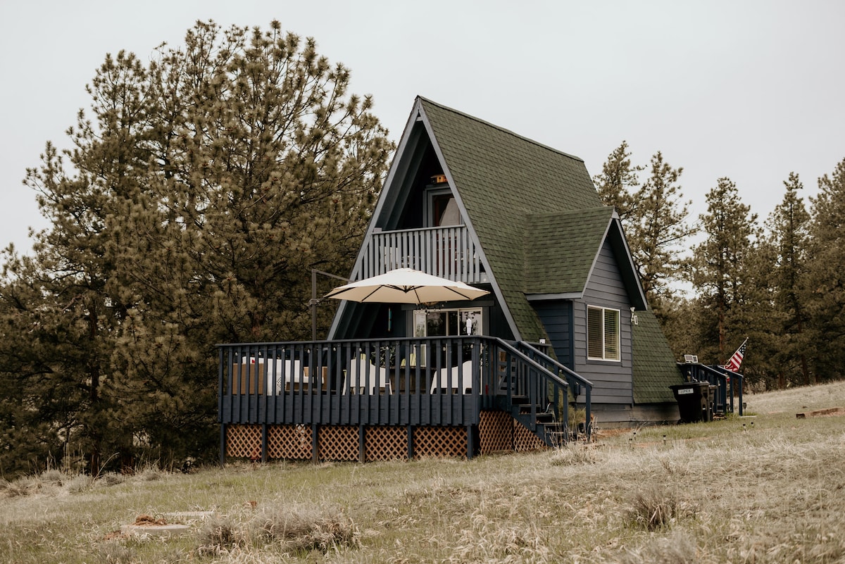 Χαλαρώστε και επανασυνδεθείτε με τη φύση στο ξυλόσπιτό μας σε σχήμα Α, που λειτουργεί 100% με ηλιακή και αιολική ενέργεια, σε υψόμετρο 8.400' στους όμορφους πρόποδες των υγρών βουνών! Απολαύστε τον μαγευτικό νυχτερινό ουρανό, τις δραματικές ανατολές/ηλιοβασιλέματα και την ησυχία που δεν θα βρείτε στην πόλη. Αποδράστε στη μοναδικότητα του ξυλόσπιτου A-Frame με σοφίτα, διπλό κρεβάτι, πλήρες μπάνιο με μπανιέρα με πόδια, πλήρη κουζίνα και μεγάλη βεράντα για να ατενίσετε τα αστέρια/γιόγκα/χαλάρωση. Αποσυνδεθείτε από την τρέλα της ζωής για να χαλαρώσετε και να απολαύσετε! Υ.Γ. Είμαστε φιλικοί με την κάνναβη/μανιτάρια για άτομα άνω των 21 ετών!🍄🤩