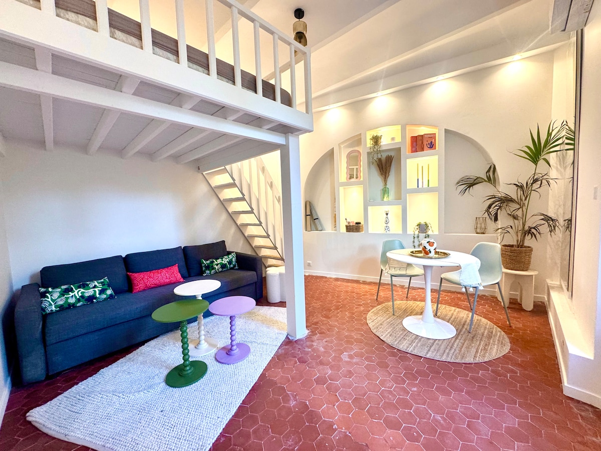 Εκπληκτική μονάδα με 2 υπνοδωμάτια και 1 μπάνιο (και ξεχωριστή τουαλέτα) με άμεση θέα στη θάλασσα, την παραλία και το βουνό. Με όλες τις σύγχρονες ανέσεις (κλιματιστικό, WIFI, APPLE TV...) και όμορφη διακόσμηση, αυτή η ιδιοκτησία έχει τα πάντα: μια καλά εξοπλισμένη κουζίνα (πλυντήριο ρούχων και ξεχωριστό στεγνωτήριο), μεγάλο καθιστικό, υπέροχη τραπεζαρία. Τα σεντόνια και οι πετσέτες παρέχονται με δείγματα καλλυντικών. Βρίσκεται στην καρδιά της παλιάς Αντίμπ, κοντά στον σιδηροδρομικό σταθμό, το λεωφορείο και την αγορά της Προβηγκίας!