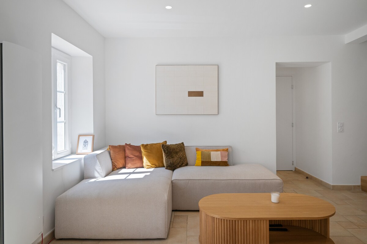 Αυτό το φωτεινό και ηλιόλουστο διαμέρισμα βρίσκεται στη γωνία του τελευταίου ορόφου μιας μικρής παραδοσιακής κατοικίας και επωφελείται από μια διπλή όψη. Έχει ανακαινιστεί προσεκτικά για να παρέχει έναν μοντέρνο, πρακτικό χώρο διαβίωσης, που περιλαμβάνει ένα φωτεινό ενιαίο σαλόνι-τραπεζαρία με πλήρως εξοπλισμένη κουζίνα. Το υπνοδωμάτιο διαθέτει υπέρδιπλο κρεβάτι (160 εκ.). Το σαλόνι διαθέτει καναπέ-κρεβάτι, ιδανικό για παιδιά. Το μπάνιο είναι πρόσφατα ανακαινισμένο και υπάρχει επίσης ένα WC επισκεπτών. Ένα ωραίο μπαλκόνι με θέα στη θάλασσα.