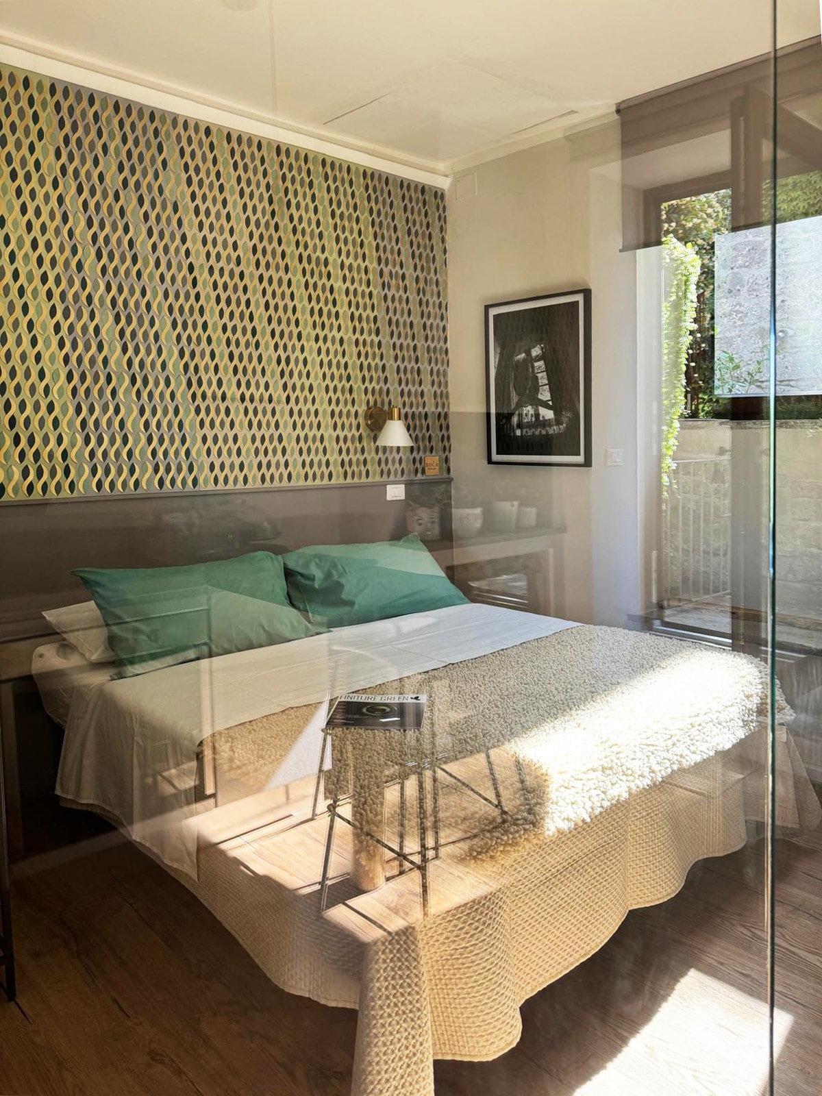 Nell’antico borgo di Vallerano, un ampio e luminoso appartamento composto da due ampie stanze, ingresso con piccolo ripostiglio e bagno, che una architetto-fotografa ha progettato per se stessa, arredato con cura per i particolari e per l’organizzazione degli spazi. Un ambiente accogliente e curato dove rilassarsi, dedicarsi alle proprie attività e partire per le escursioni nella Tuscia, consultando le guide e le informazioni sui principali luoghi di interesse disponibili nell'appartamento.