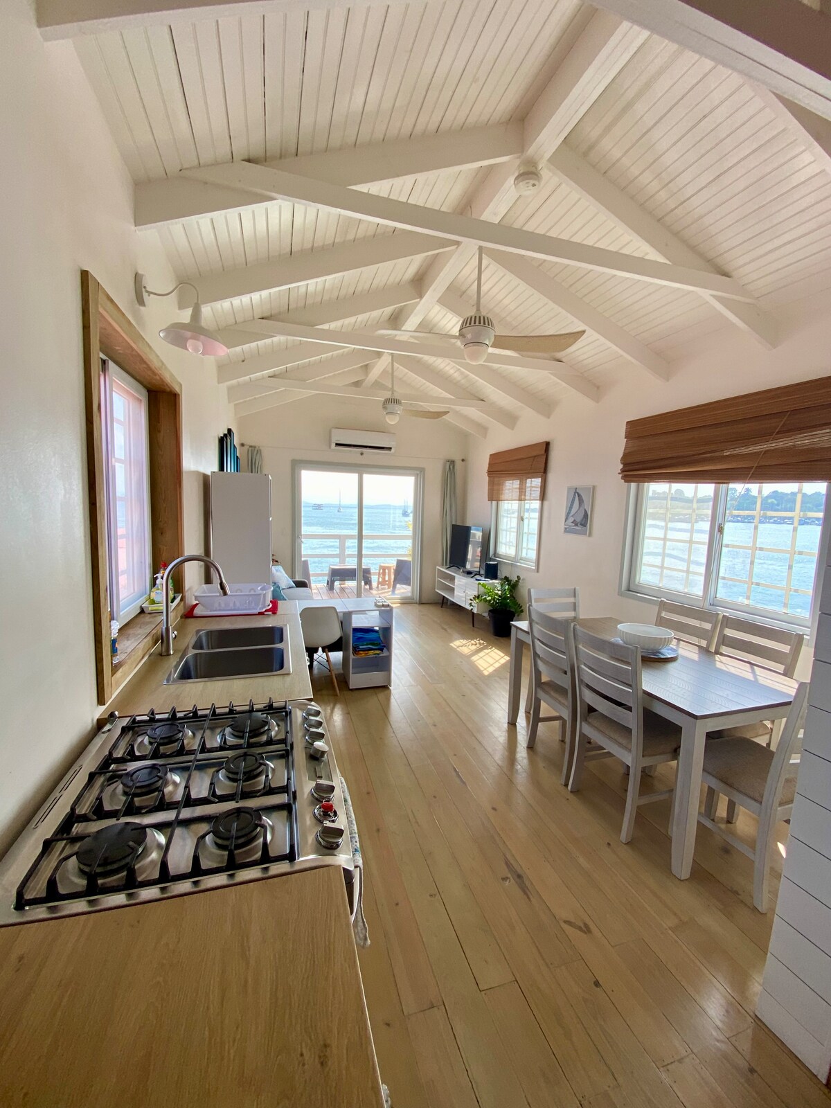 Ζήστε την απόλυτη παραθαλάσσια απόδραση με πανοραμική θέα στο θαλασσινό τοπίο από την ιδιωτική πλωτή βίλα 2 υπνοδωματίων σας. Χαλαρώστε στην εξωτερική βεράντα με τραπεζαρία και ξαπλώστρες ή κατευθυνθείτε προς τη βεράντα του τελευταίου ορόφου για ηλιοθεραπεία ή παρατήρηση αστεριών. Στο εσωτερικό, θα βρείτε μοντέρνα, άνετα, φιλικά προς το περιβάλλον καταλύματα που περιλαμβάνουν κουζίνα για την προετοιμασία γευμάτων και μπάνιο με ντους.
