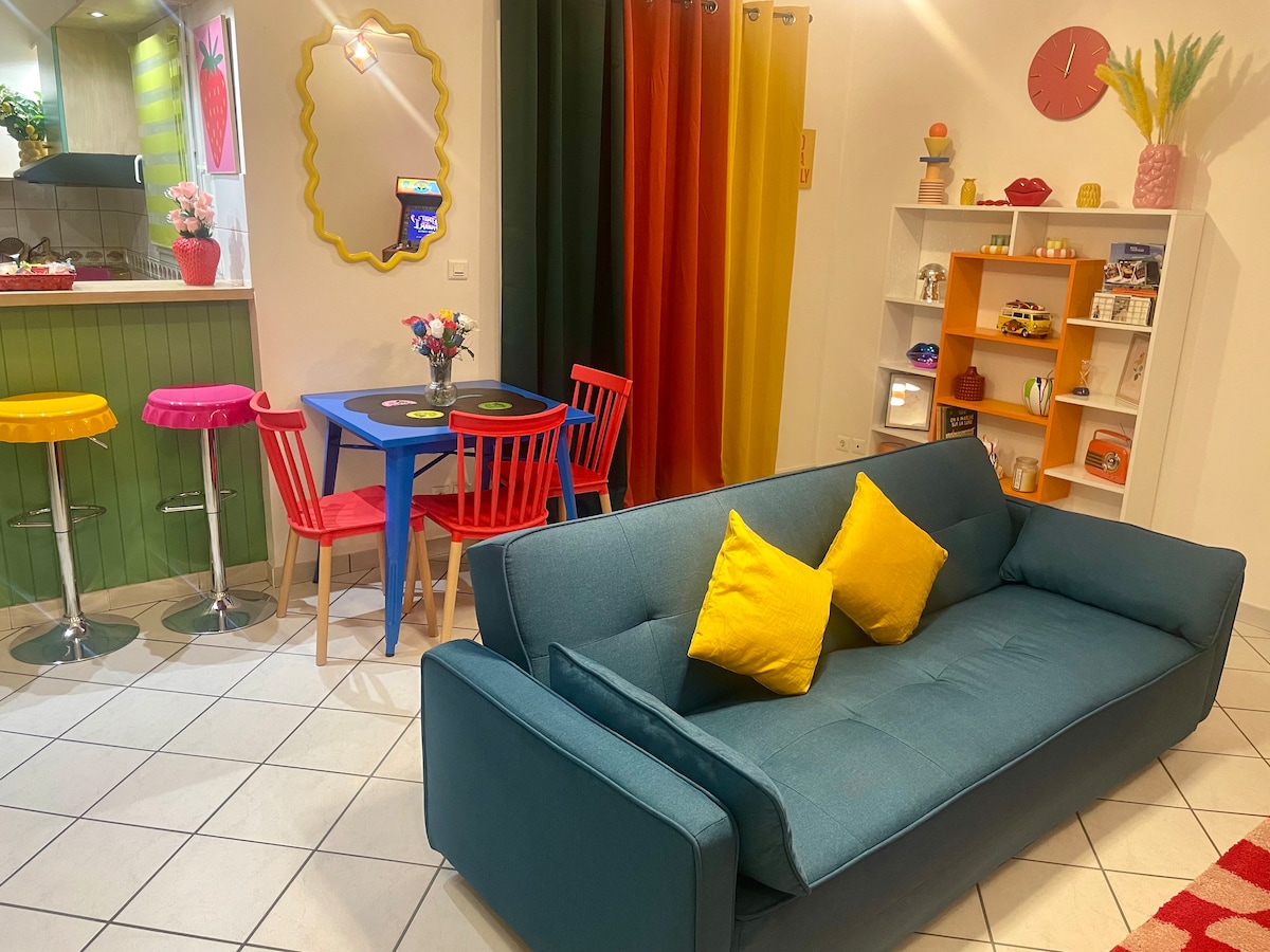 💫 Bienvenue au Rétro Chic’ago ! 💫 Classé Meublé de Tourisme 3 étoiles, notre charmant appart’ en duplex de 55m2, au style unique émerveillera votre séjour ! En déplacement pro, en vacances, seul, en couple ou en famille, vous serez séduit par l’ambiance rétro et colorée du Rétro Chic’ago ! Ses principales qualités : - PARKING PRIVÉ devant le logement 🅿️ - Accès gratuit à NETFLIX, CANAL+ et DISNEY+🍿 - CHAMBRE spacieuse et confortable 🛏️ - CUISINE très bien équipée