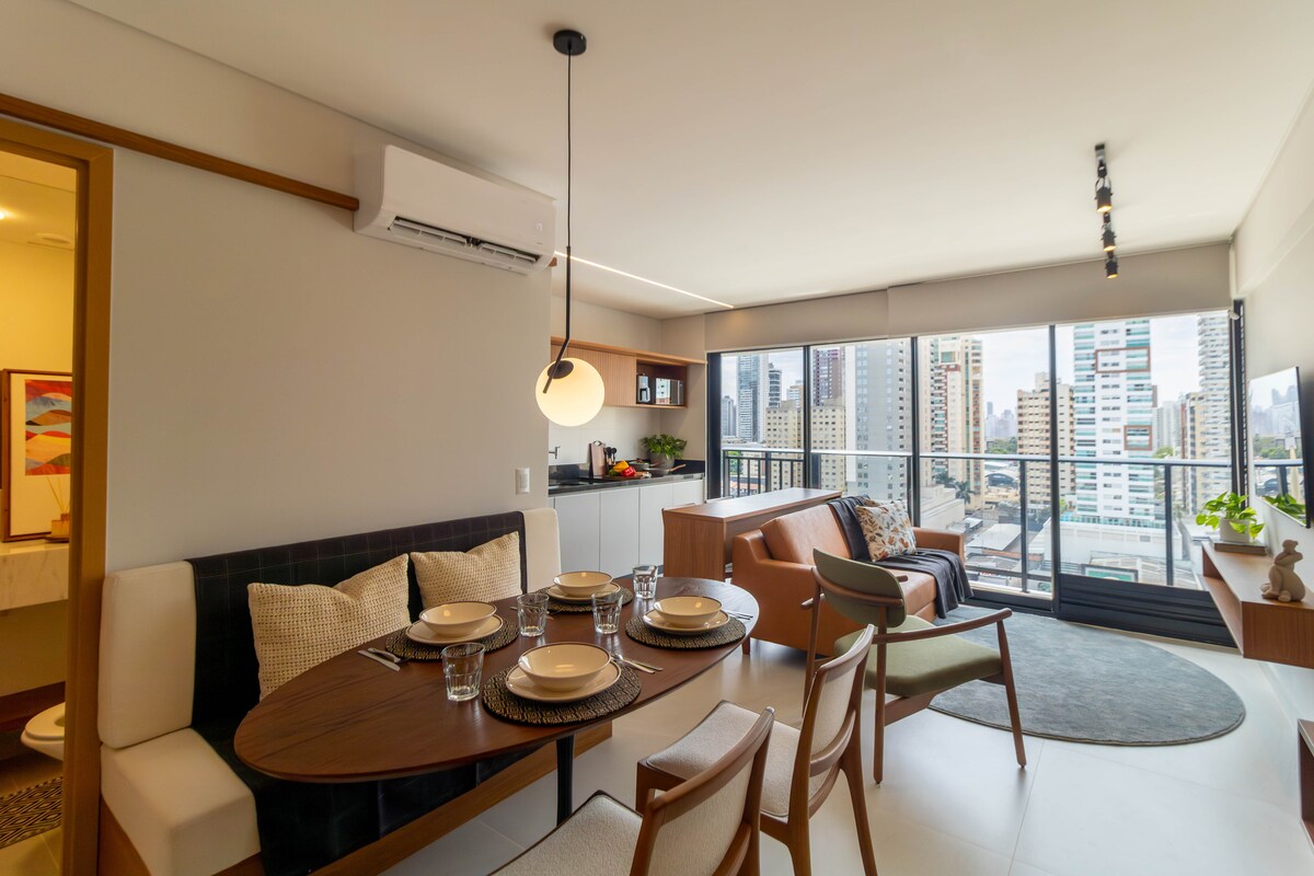 Brand-new and fully air-conditioned space, designed to provide comfort in any season. Located on the 8th floor, with a balcony overlooking a charming street in the Marista district. Just two blocks from Alameda Ricardo Paranhos and Parque Areião, in the most desirable area of Goiânia, close to great restaurants, as well as bakeries and gyms. The building is new and fully equipped, offering a swimming pool, gym, sauna, kids’ playroom, and an easy-access parking space.