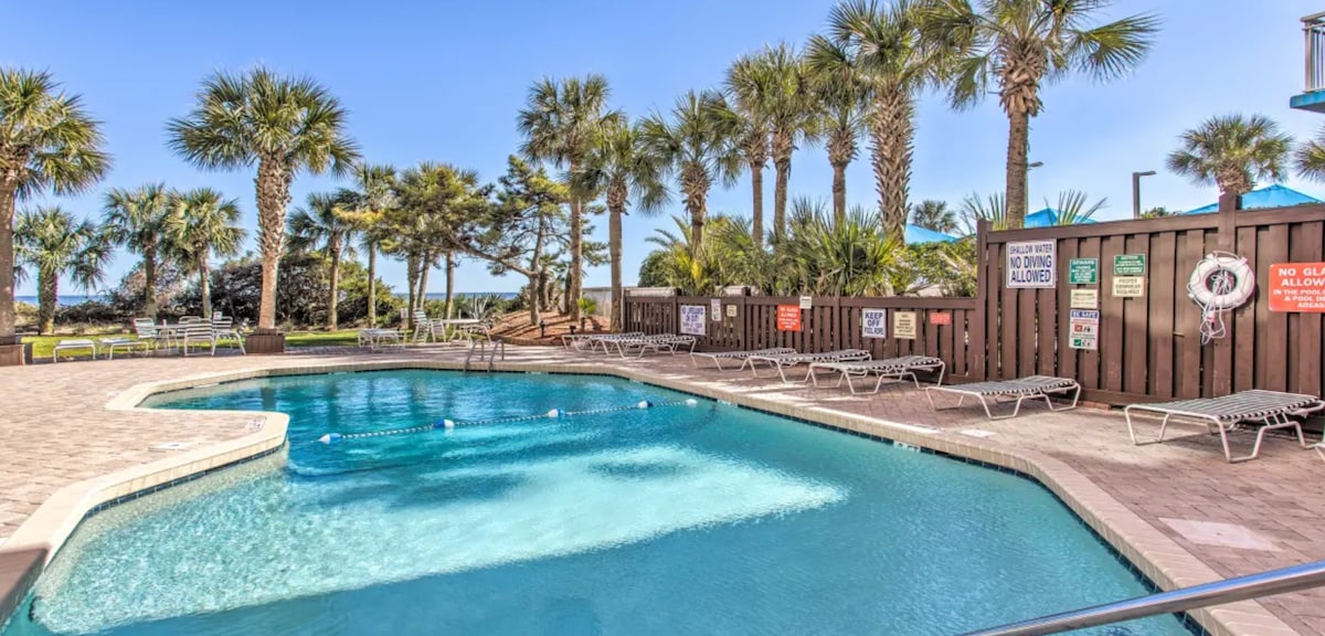 * new king bed in spacious bedroom * 2 min stroll to beach access with baths * fast 500mb fiber internet * smart TVs in bedroom & living room * free covered parking in drive *pet friendly, 2 pets up to 50lbs each * $159 pet fee per visit * Optional golf cart with free beach parking Nearby attractions: * Bass Pro 2 miles * intracoastal waterway 2 miles * Broadway at the beach 11 miles * Riley's Aquarium 10 miles * Ripken baseball 12 miles * Barefoot Landing ½ mile * Big M casino 8 miles