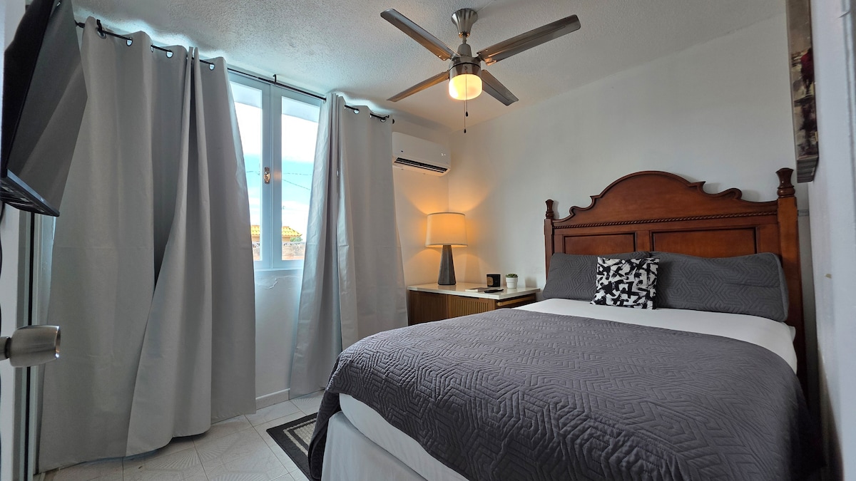 Χαλαρωτικό διαμέρισμα 1 δωματίου με κλιματισμό σε ένα σπίτι 3 διαμερισμάτων με 1 κρεβάτι queen size, 1 μπάνιο και κουζίνα με όλα όσα μπορεί να χρειαστείτε. Βρίσκεται σε μια κανονική γειτονιά της εργατικής τάξης του Πουέρτο Ρίκο. Βρίσκεται (με αυτοκίνητο) 7 λεπτά από το αεροδρόμιο, 8 λεπτά από την παραλία, 12 λεπτά από το Condado και το Piñones και 20 λεπτά από το Old San Juan και την Plaza Las Americas. Κοντά στην περιοχή μπορείτε να βρείτε βενζινάδικα, 24ωρο σούπερ μάρκετ, φαστ φουντ, εστιατόρια και ενοικιαζόμενα αυτοκίνητα. check in με κουτί φύλαξης κλειδιών. SmartTV.