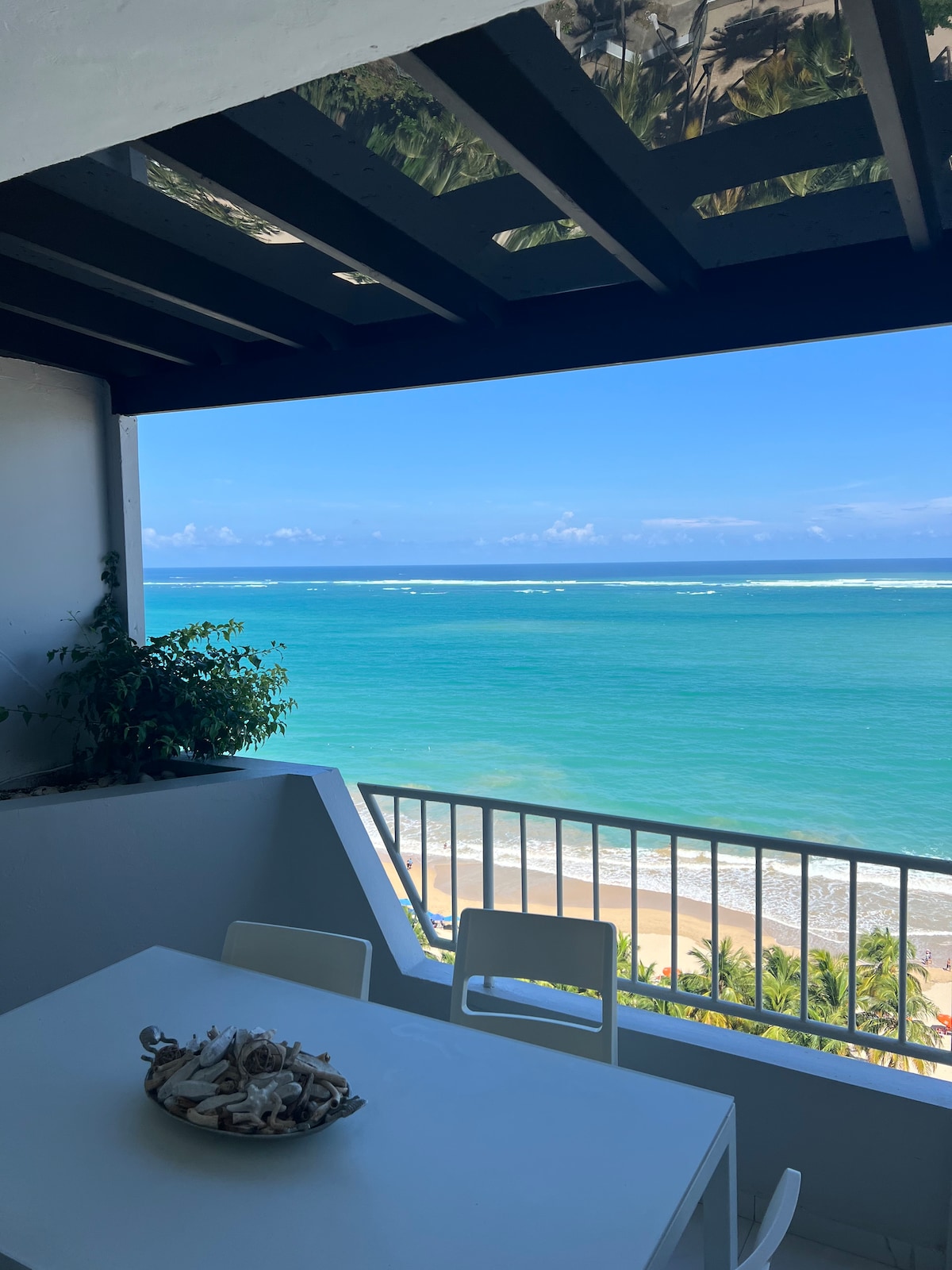 Μπροστά στον ωκεανό με μπαλκόνι. Όλα τα δάπεδα από τσιμεντένια πλακάκια, ανακαινισμένη κουζίνα και μπάνιο, εξοπλισμένα για όμορφες διακοπές στην παραλία ή βραχυπρόθεσμη ή μακροπρόθεσμη διαμονή. WiFi και 2 μεγάλες τηλεοράσεις επίπεδης οθόνης. Πανέμορφη θέα στον γαλάζιο ωκεανό και τον ουρανό. Ιδιωτικό μπαλκόνι. Στην παραλία με πισίνα, αθλητικά γήπεδα, αίθρια, μπάρμπεκιου και χώρο για πικνίκ. 5 λεπτά από το αεροδρόμιο του Σαν Χουάν (SJU). Μοιραστείτε την ίδια ομαλή λευκή αμμουδιά με το διάσημο ξενοδοχείο El Juan και το Caino & Water Club και άλλα ξενοδοχεία 5 αστέρων.